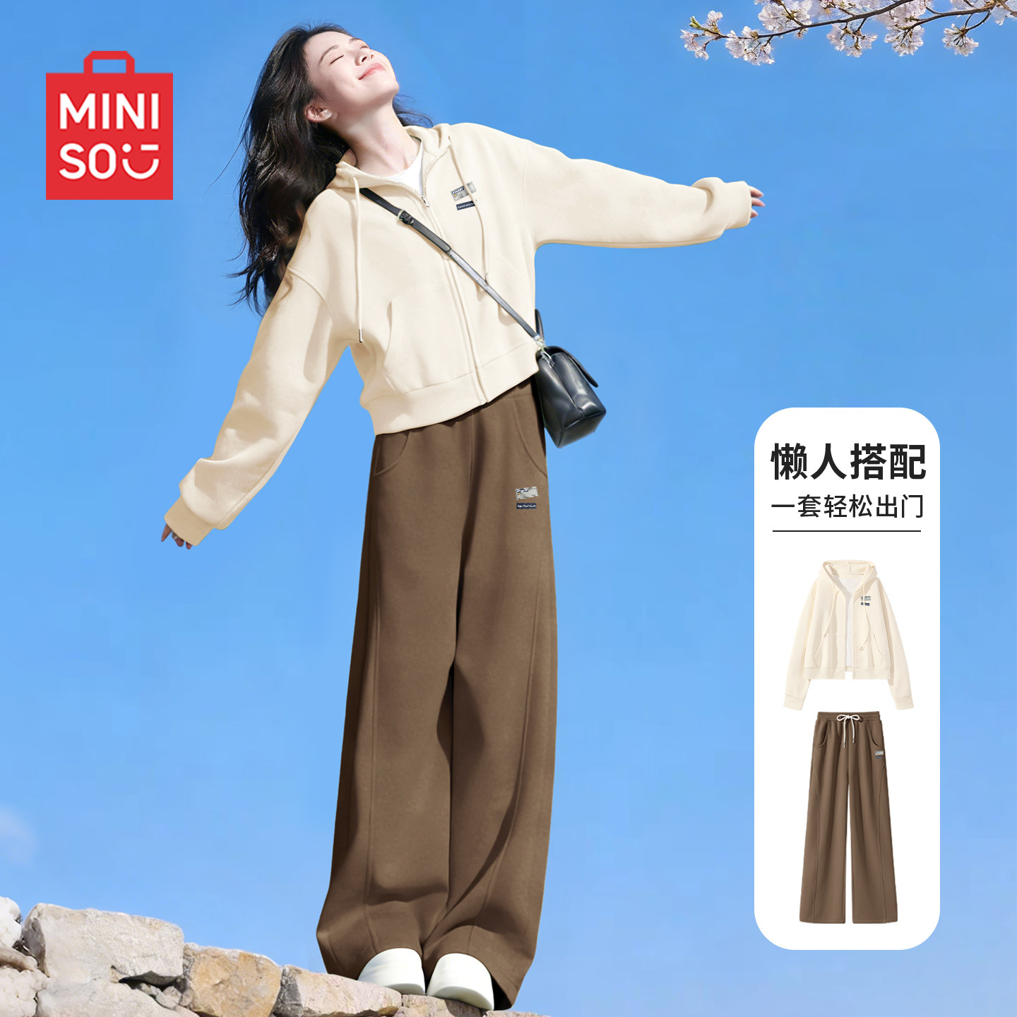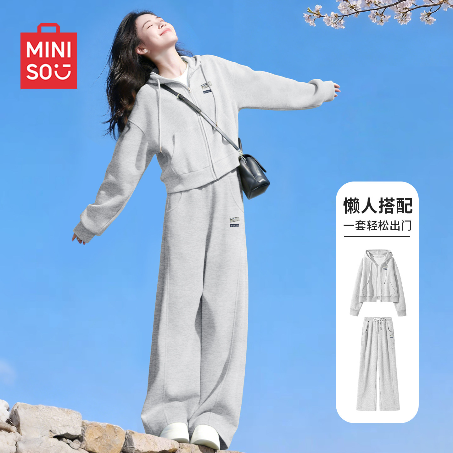 蓝色外套休闲运动裤 初春胖mm大码 两件套D 女2026新款 名创优品套装