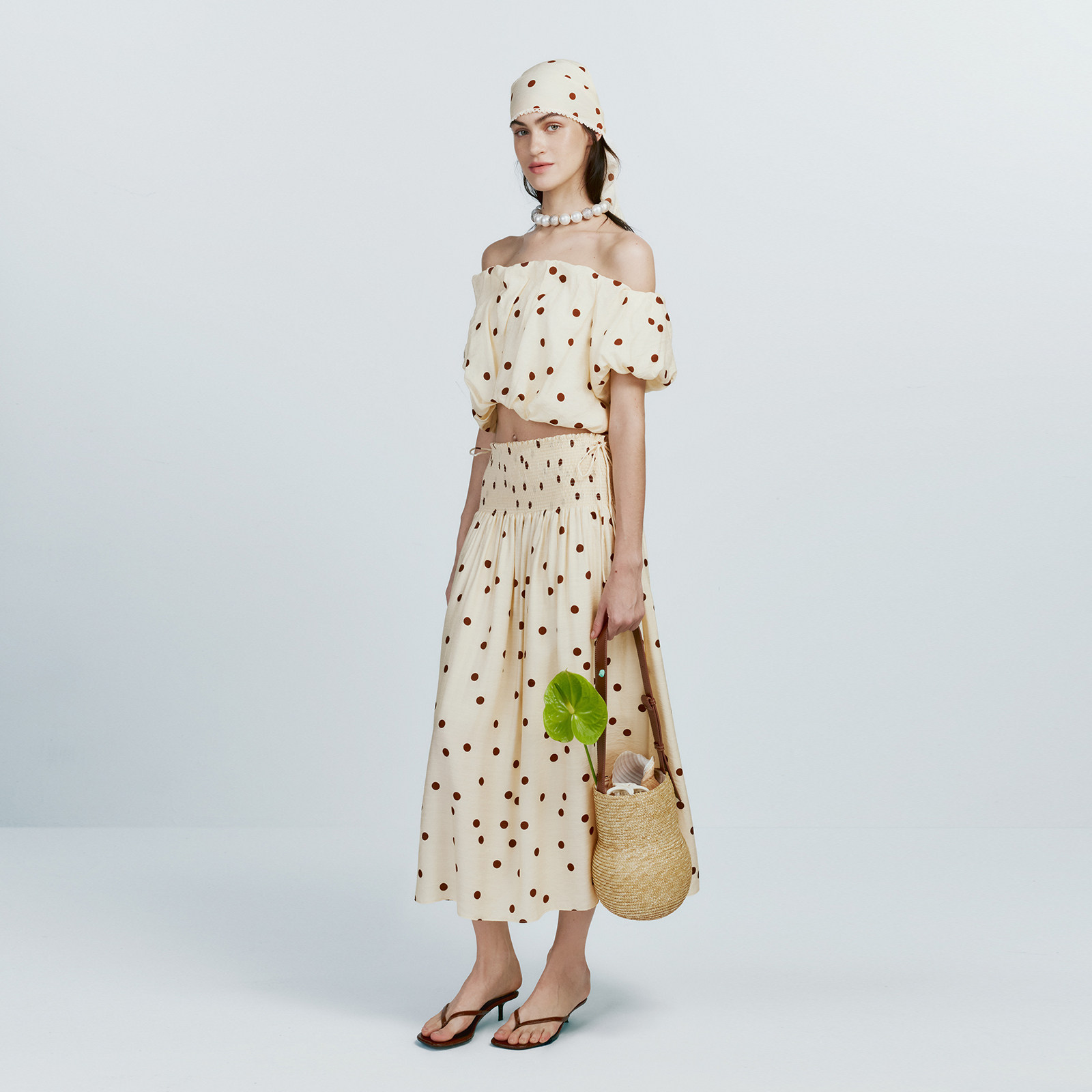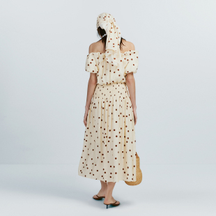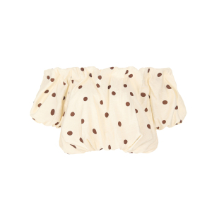 复古时髦女装 wana 一字领精致法式 新款 try波点褶皱感抹胸上衣春季