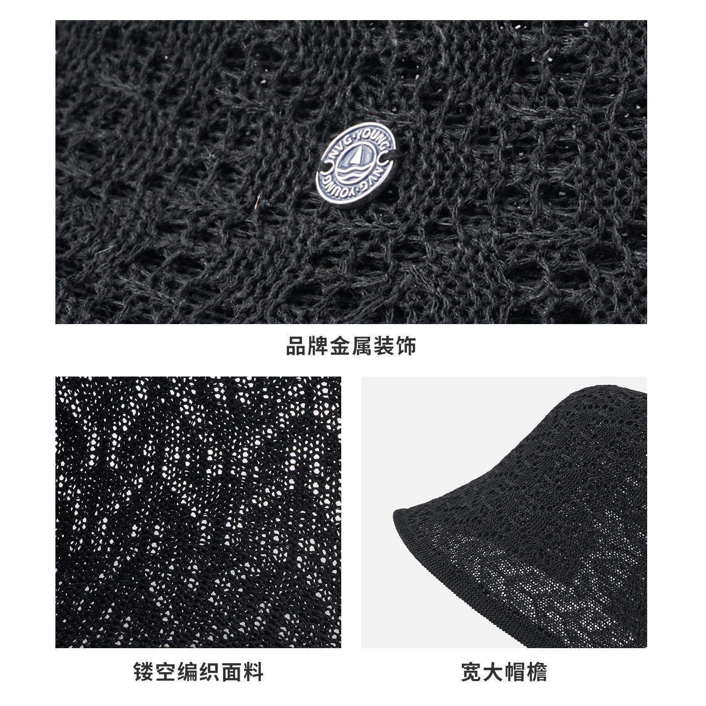 navigare意大利小帆船镂空透气针织水桶帽女显脸小素颜百搭渔夫帽