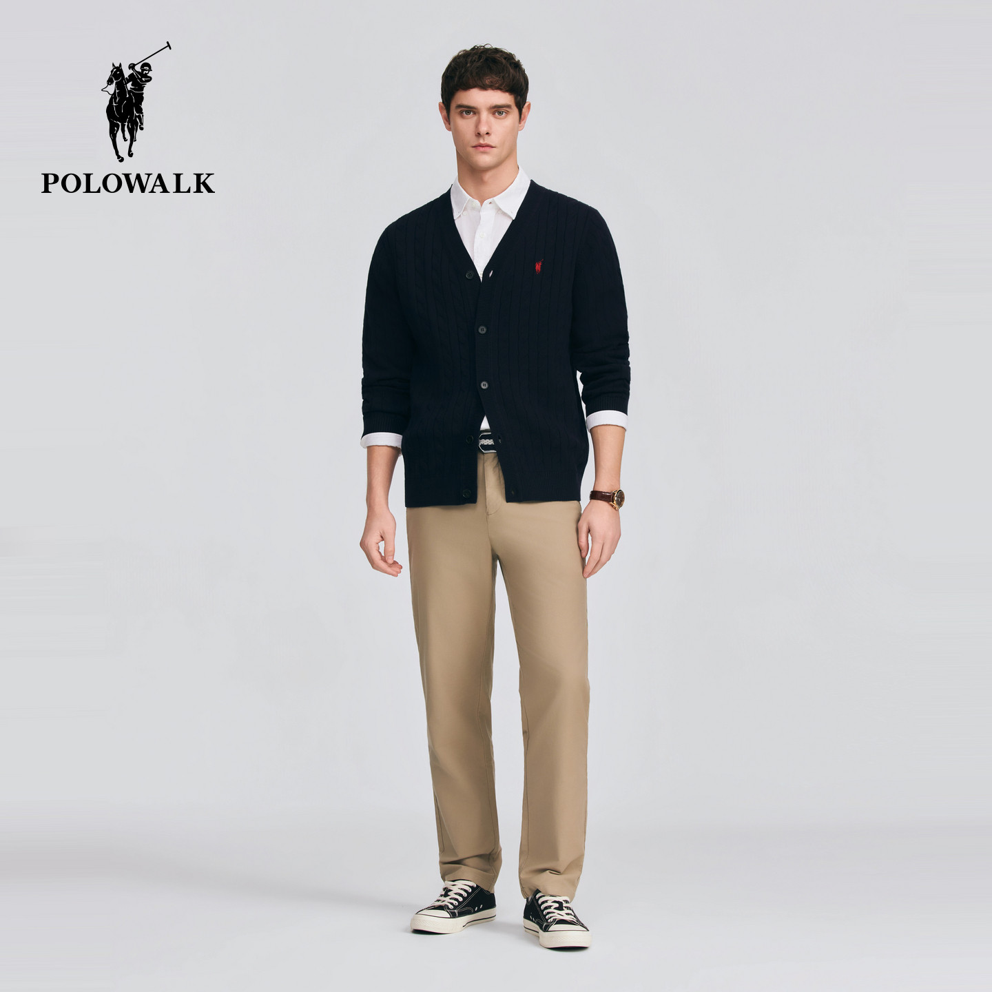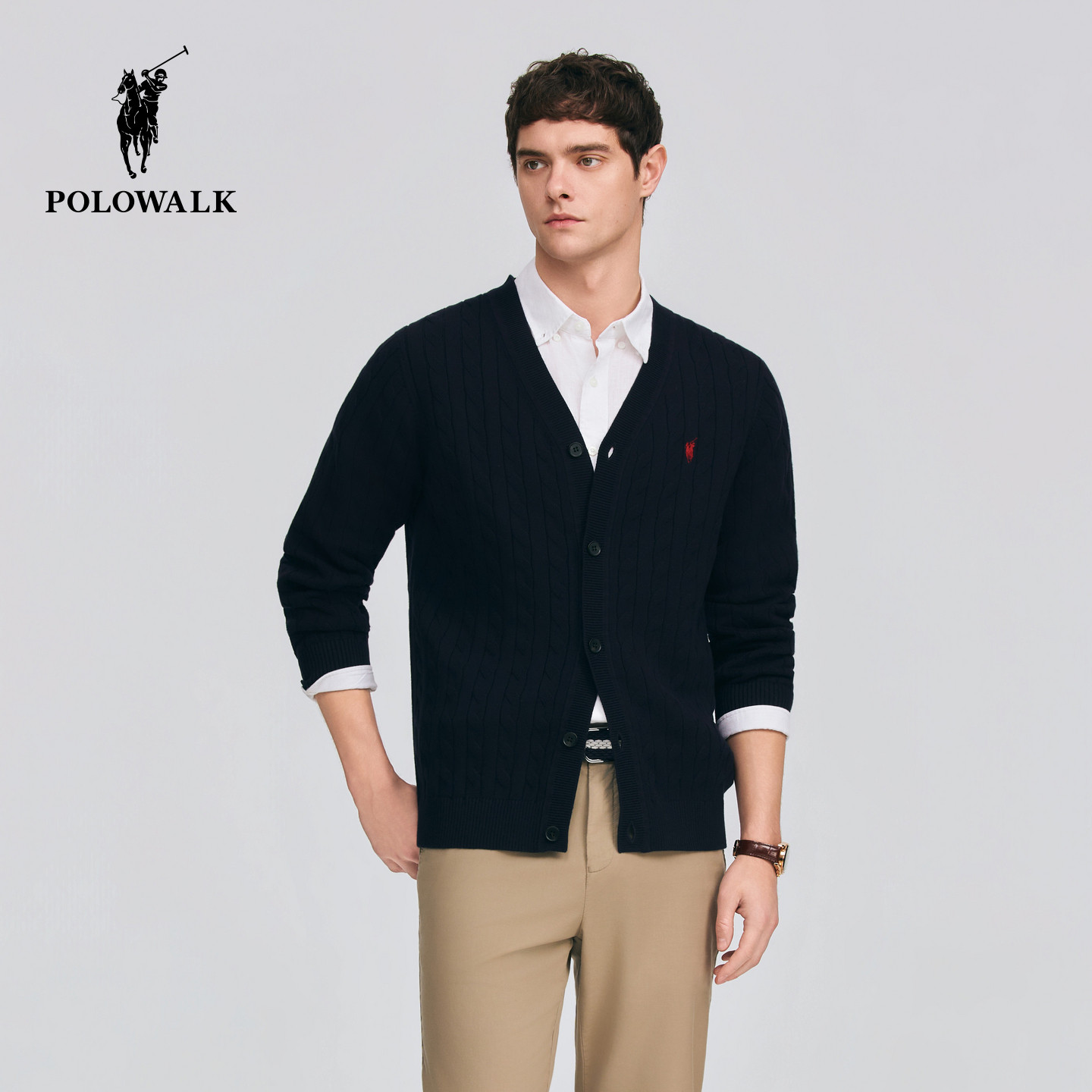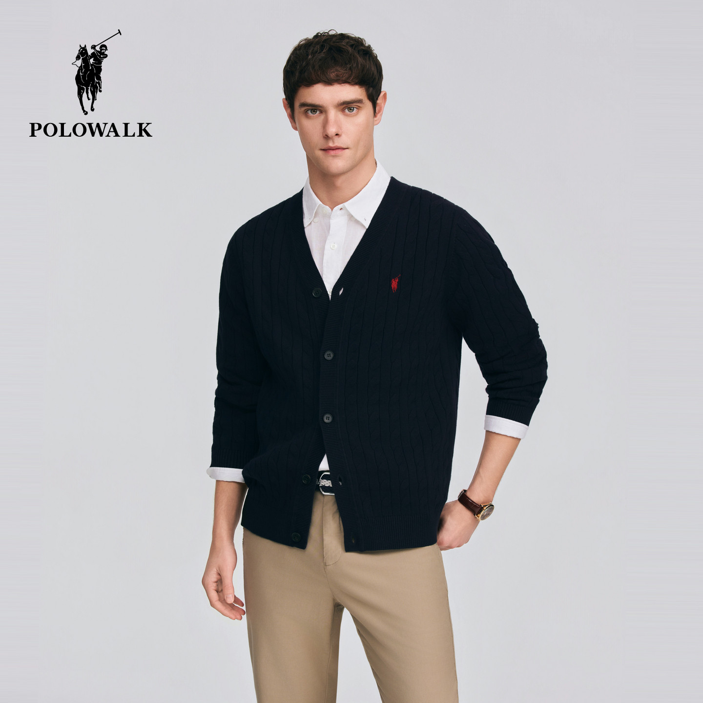 针织衫 V领绞花针织开衫 2026春季 男装 休闲上衣 新品 POLOWALK男式