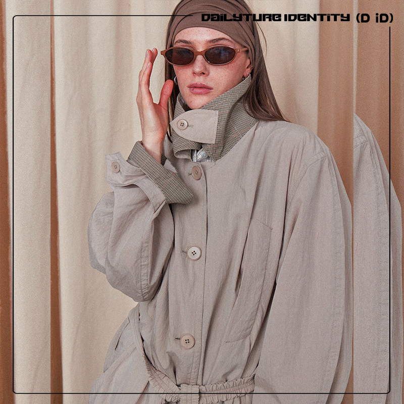 可收纳轻量化多穿格纹拼接天丝中长风衣 Nikki DID DAILY