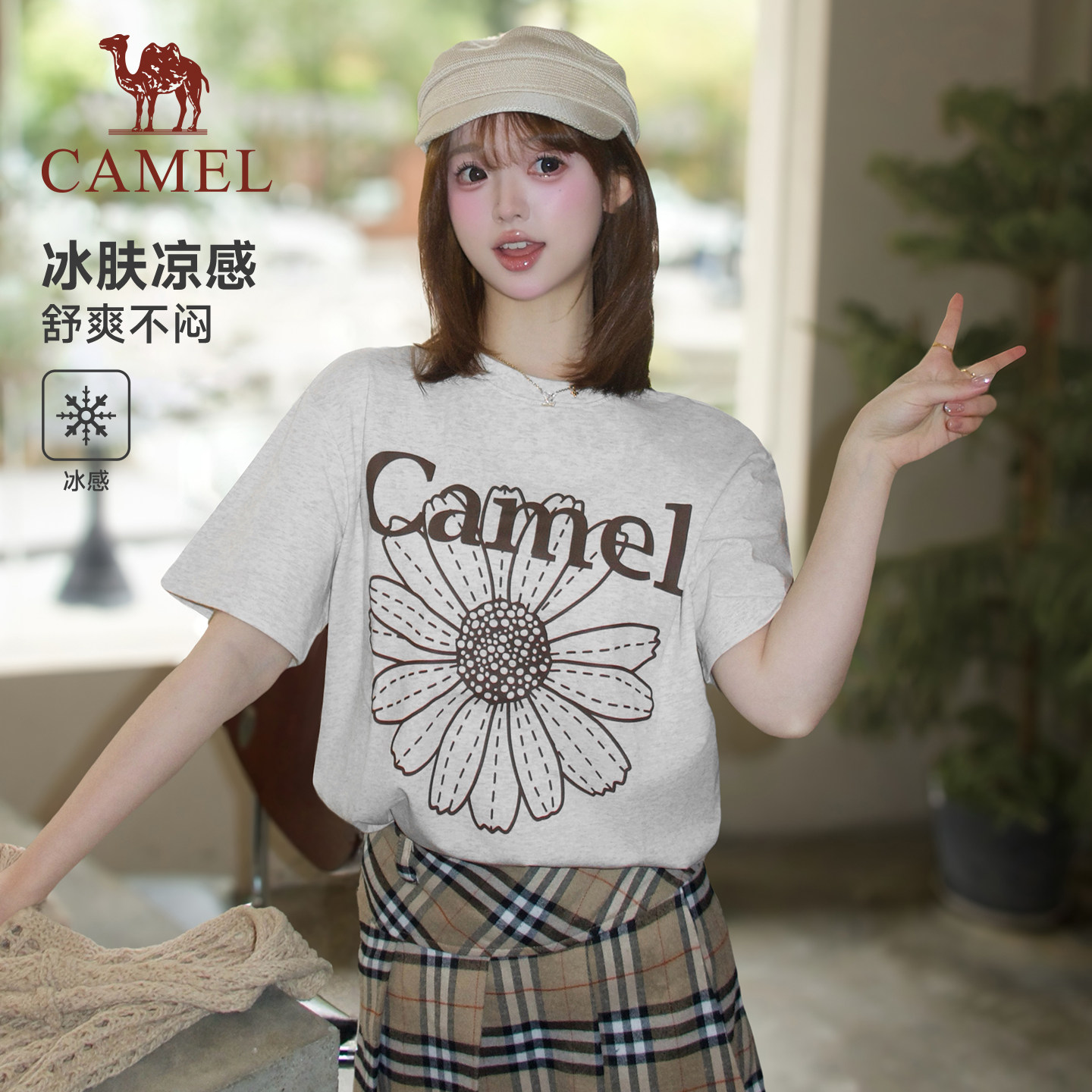 骆驼冰皮T神女小雏菊T恤短袖 棉感休闲韩系圆领学生运动上衣潮 夏季