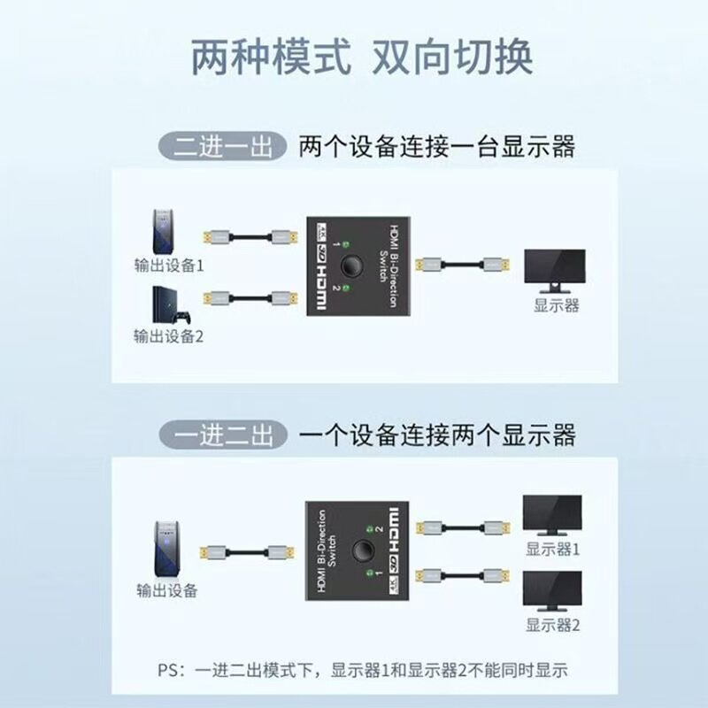 HDMI高清一分二双向切换器二主机切换显示二进一出电脑显示器4K