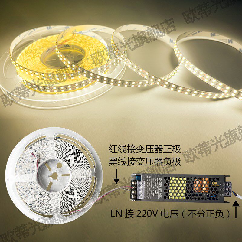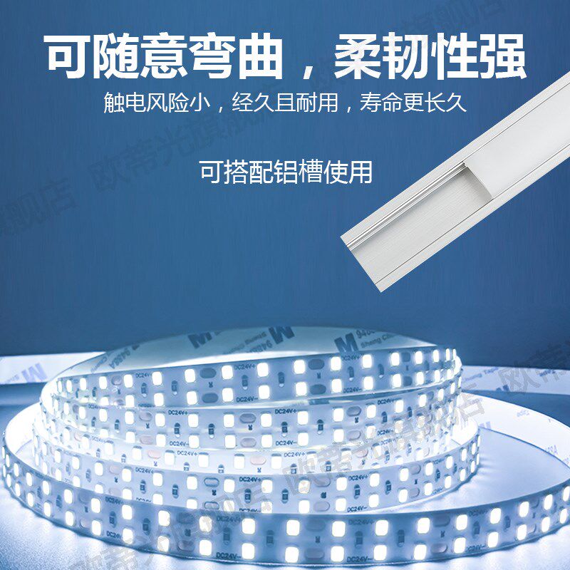LED超亮24V双排灯带自粘家用吊顶铝槽硅胶嵌入式 线性12V双排灯带