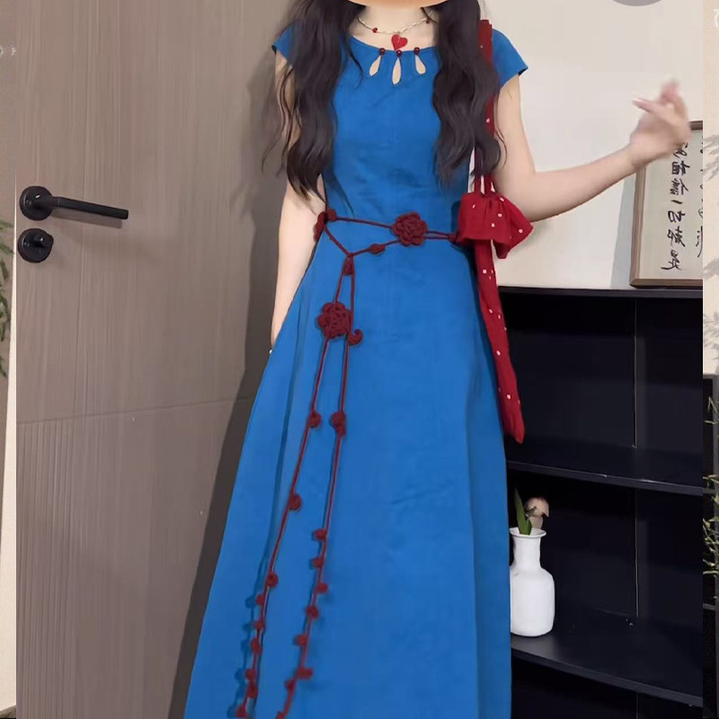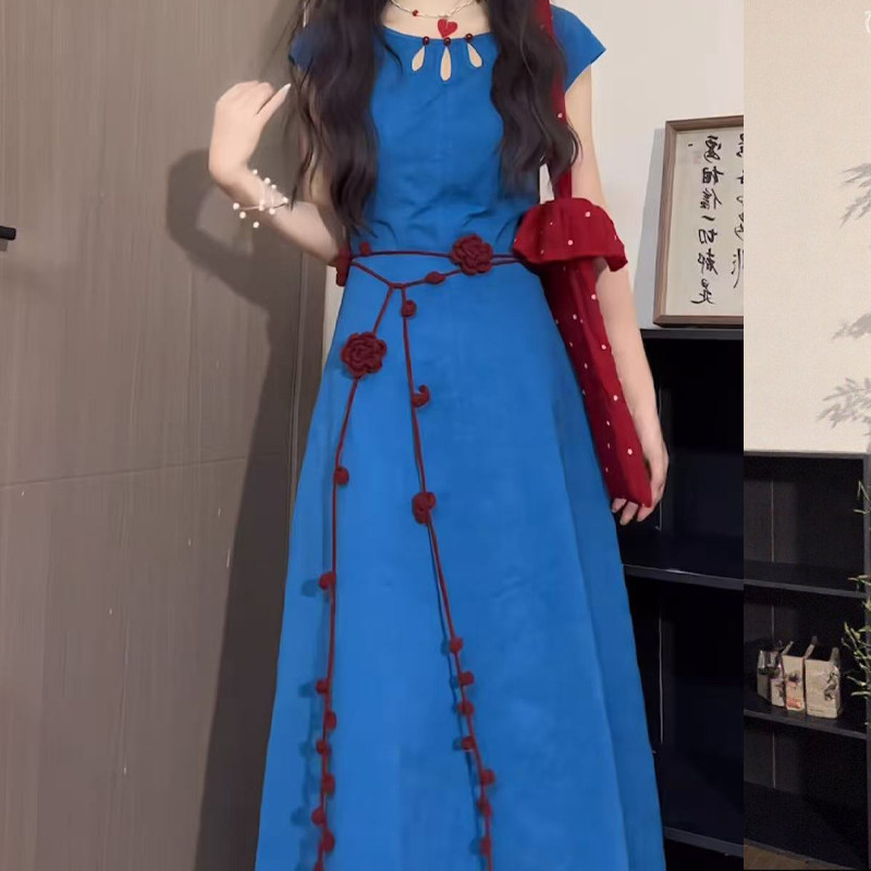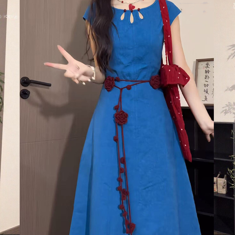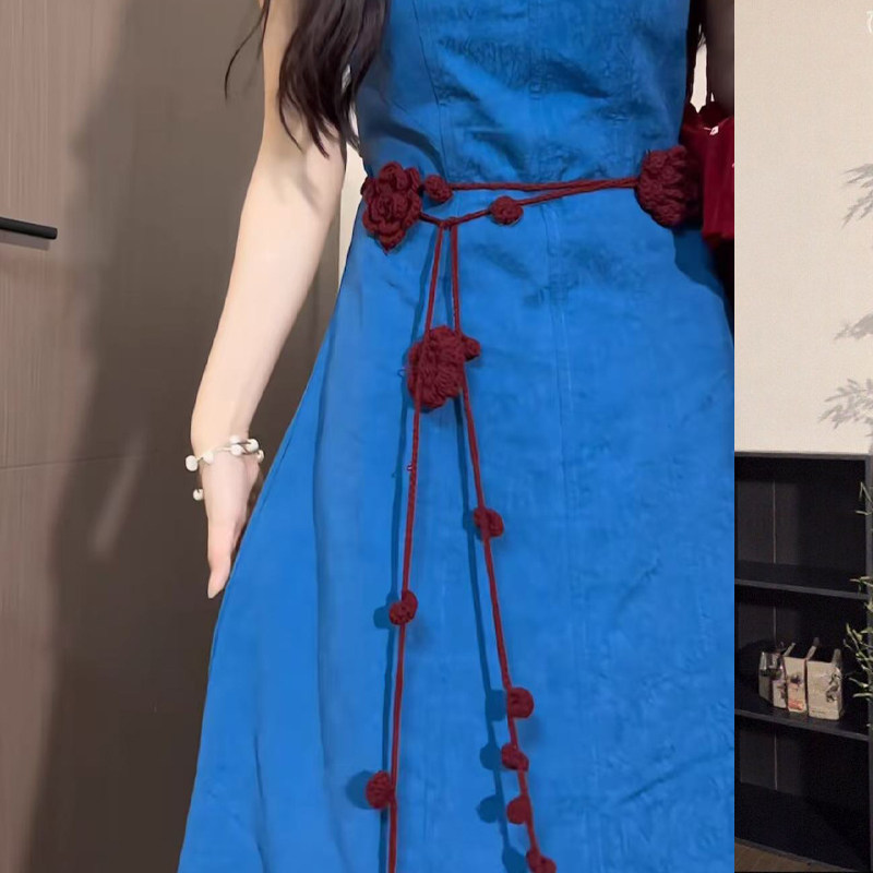 民族风复古酒红编织玫瑰腰链女新款 配裙子长条腰带腰绳旅游配饰品