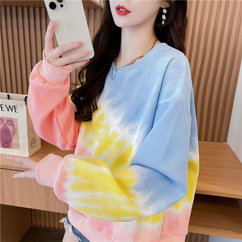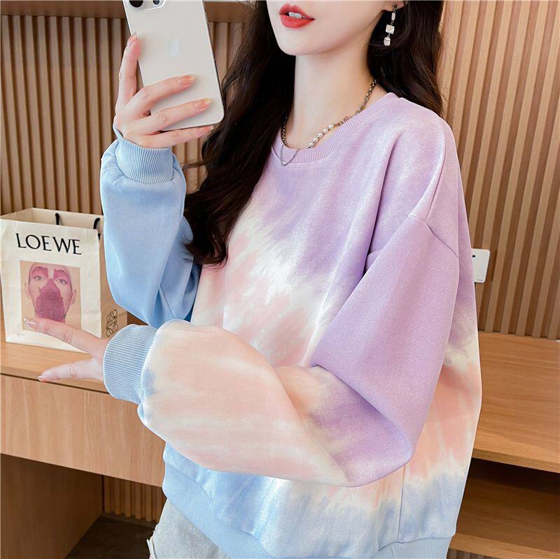 宽松潮流长袖 韩版 2025年新款 渐变色设计感圆领卫衣女春秋薄款