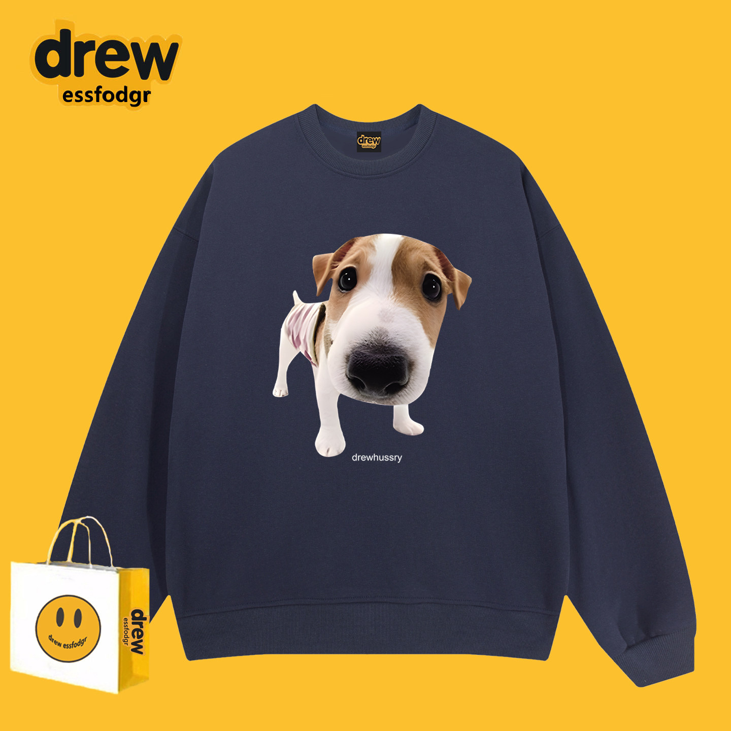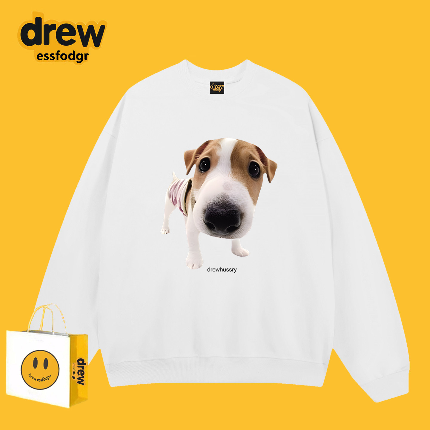 Drew美式 潮牌恶搞可爱小狗印花圆领卫衣男女休闲百搭情侣秋冬上衣