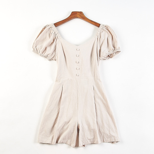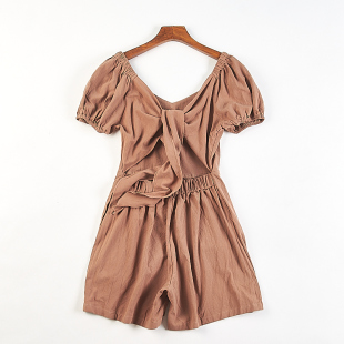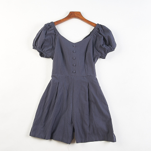 女84003法式 连体阔腿短裤 夏秋新款 高腰修身 韩版 A字连身裤 纯棉短袖