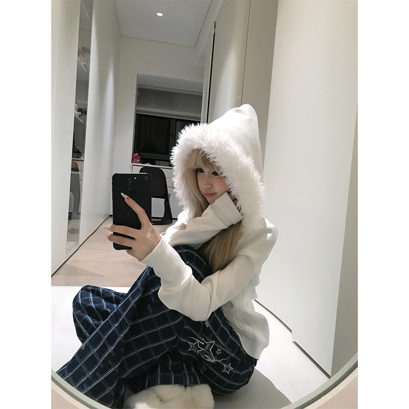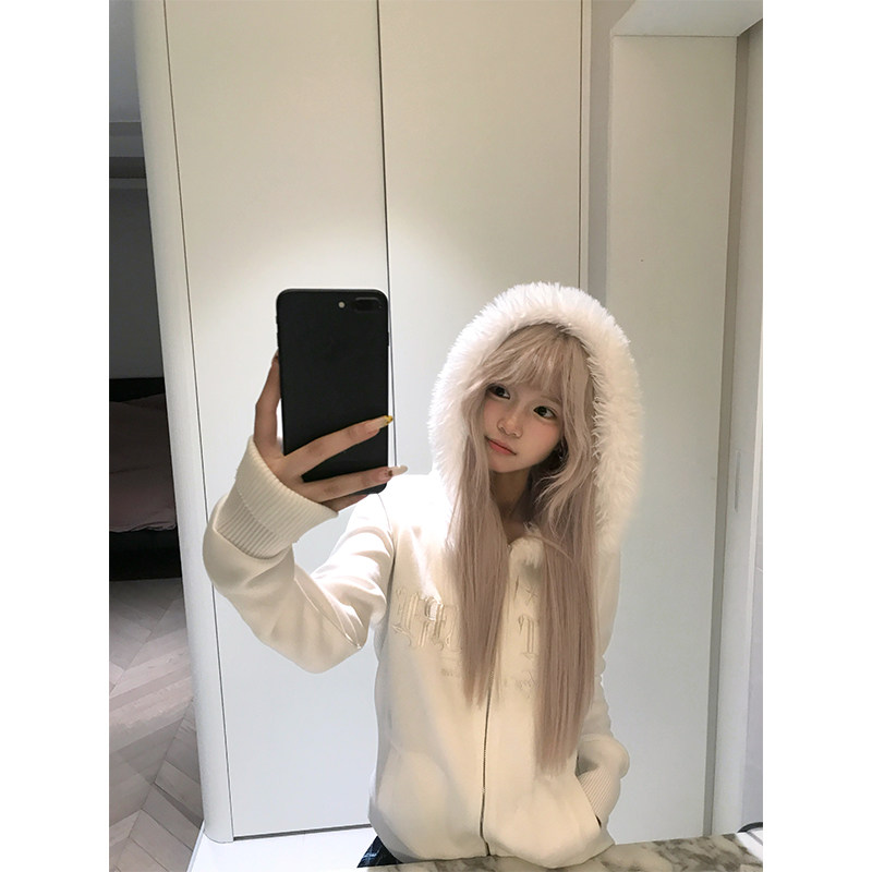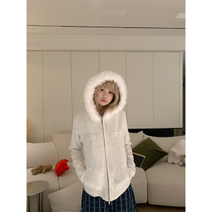 男女秋季 小众哥特刺绣毛领连帽卫衣开衫 宽松休闲百搭外套 美式 JMJ