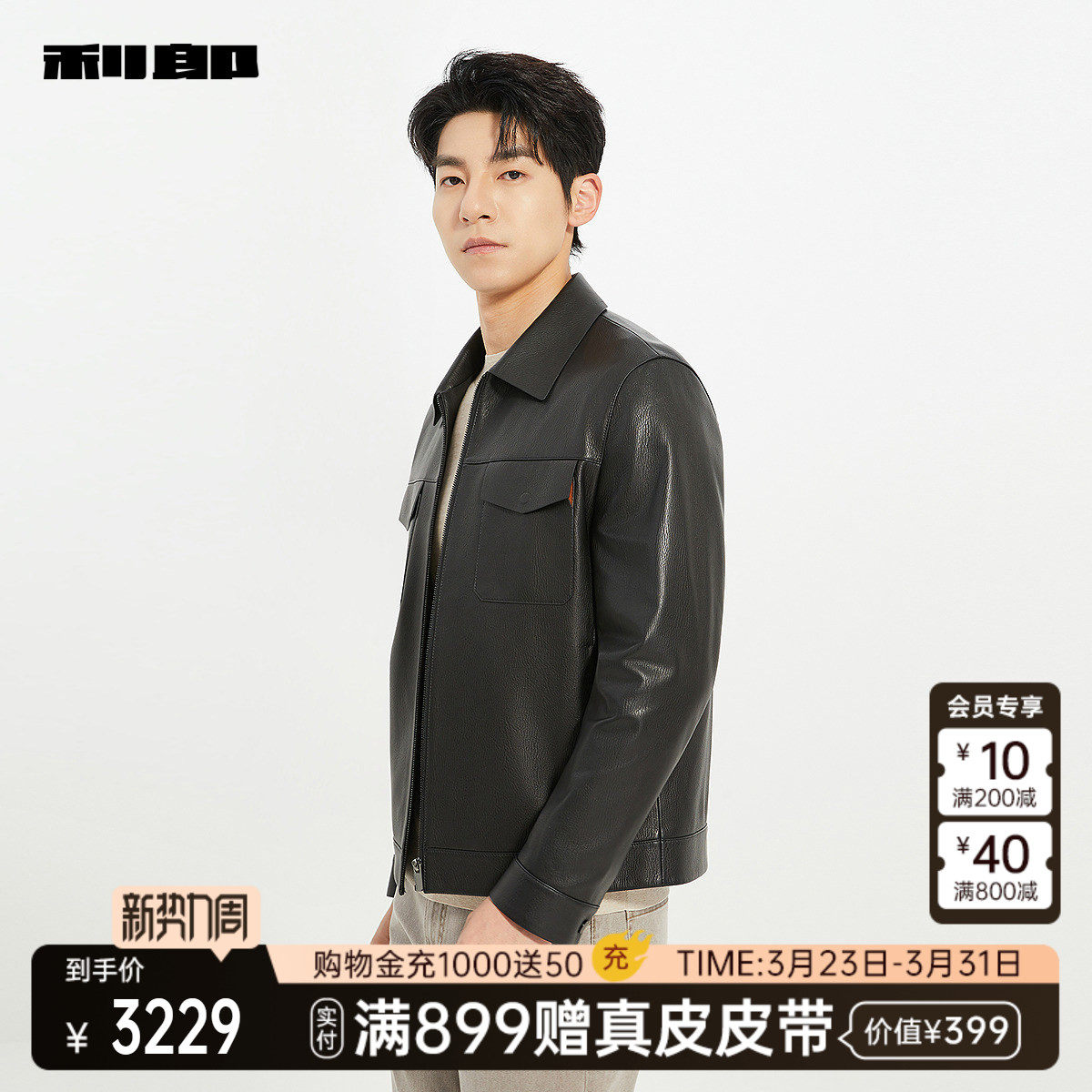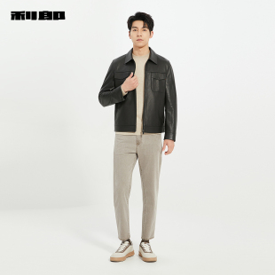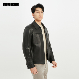 利郎官方绵羊头层皮革真皮皮衣男春秋外套25QZP1031Y 商场同款