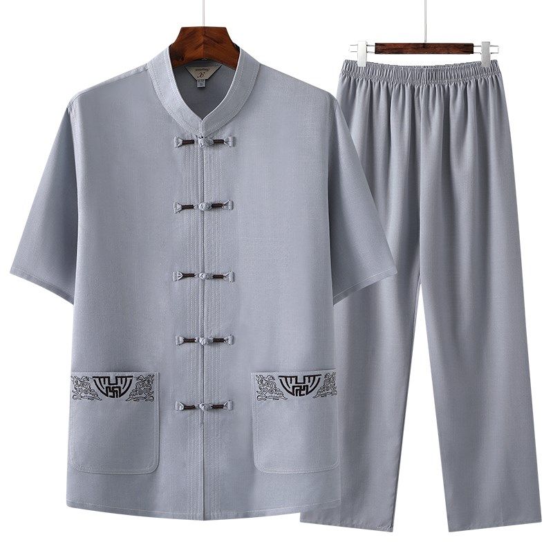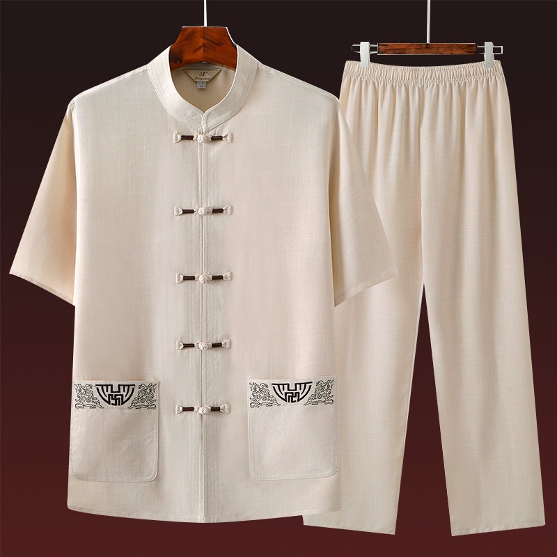 中老年爷爷汉服爸爸中国风男装 唐装 夏装 套装 老年人衣 男棉麻c短袖