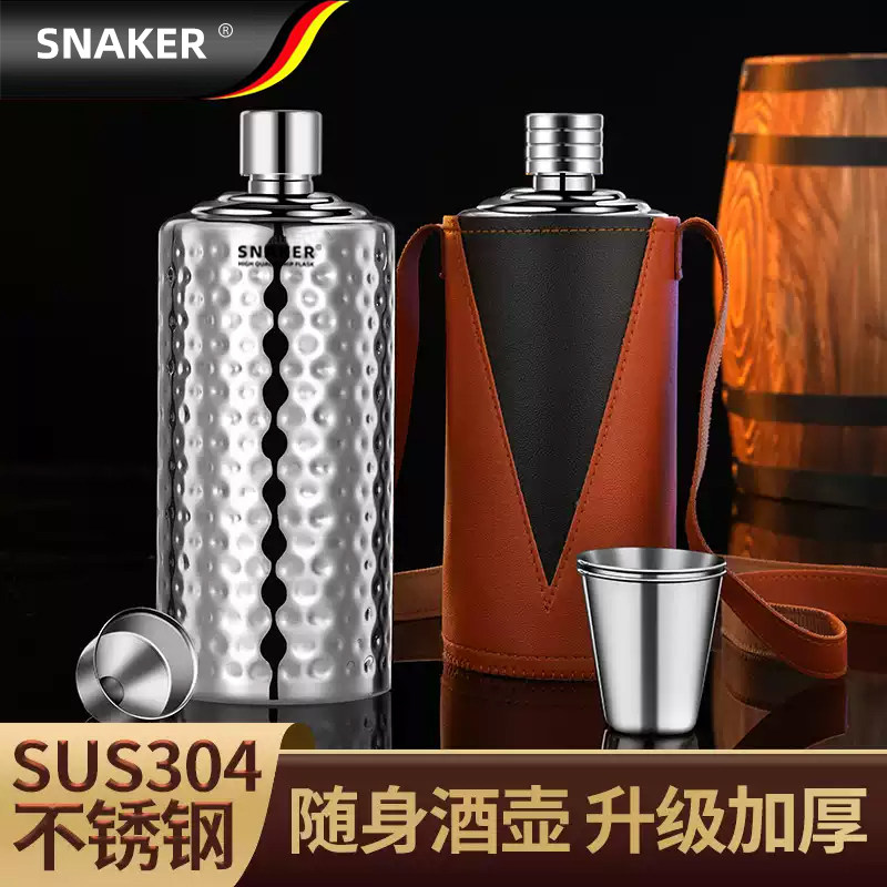 德国小酒壶316不锈钢高档随身便携1一2斤装 白酒圆柱304钢酒瓶加厚
