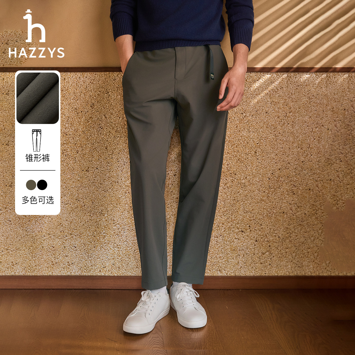 秋季 通勤纯色微弹裤 甄选 商务休闲锥形长裤 子 Hazzys哈吉斯男士