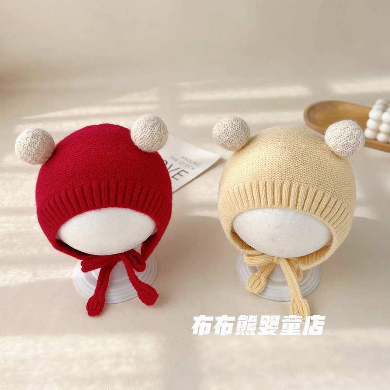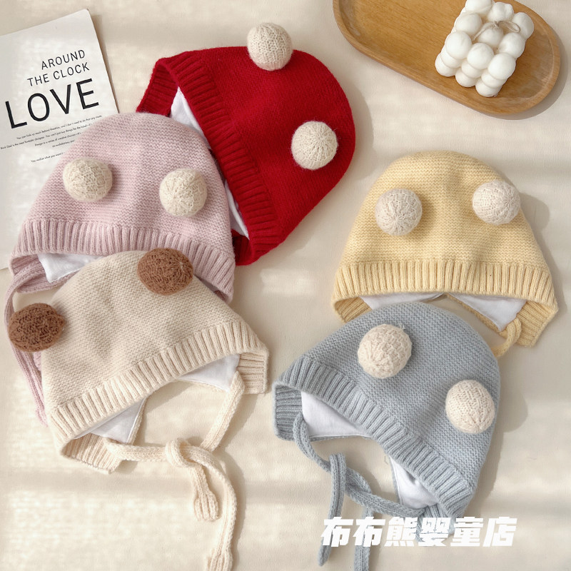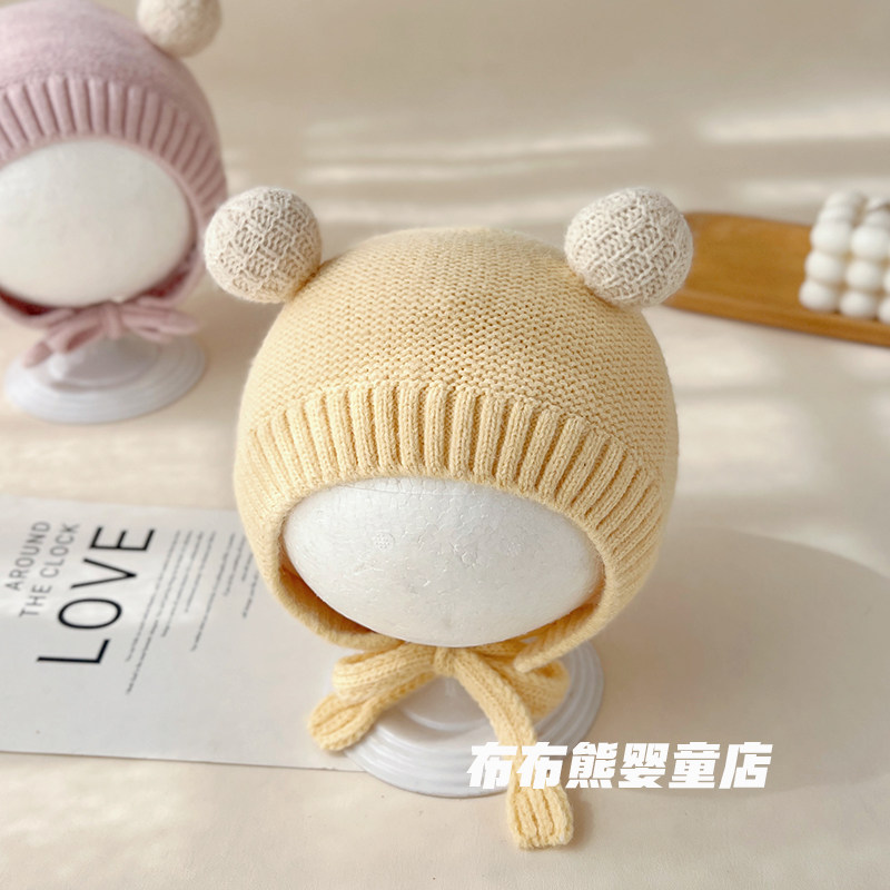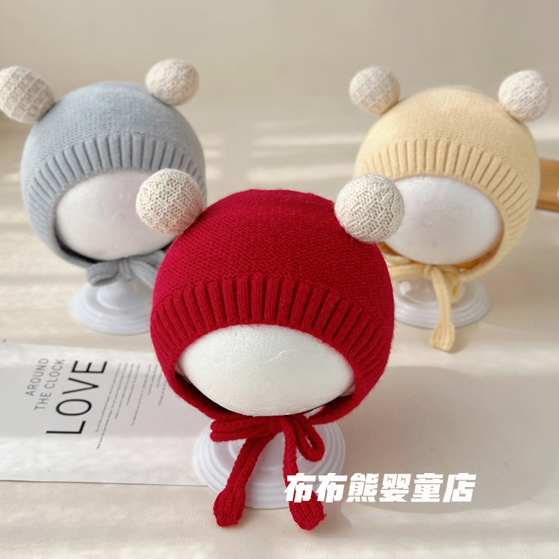 婴儿帽子冬季 可爱加厚针织护耳帽宝宝秋冬天保暖毛线帽小月龄胎帽