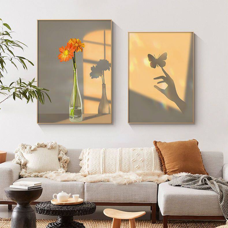 光影植物现代简约装 饰画奶油风ins卧室客厅树叶治愈民宿床头挂画