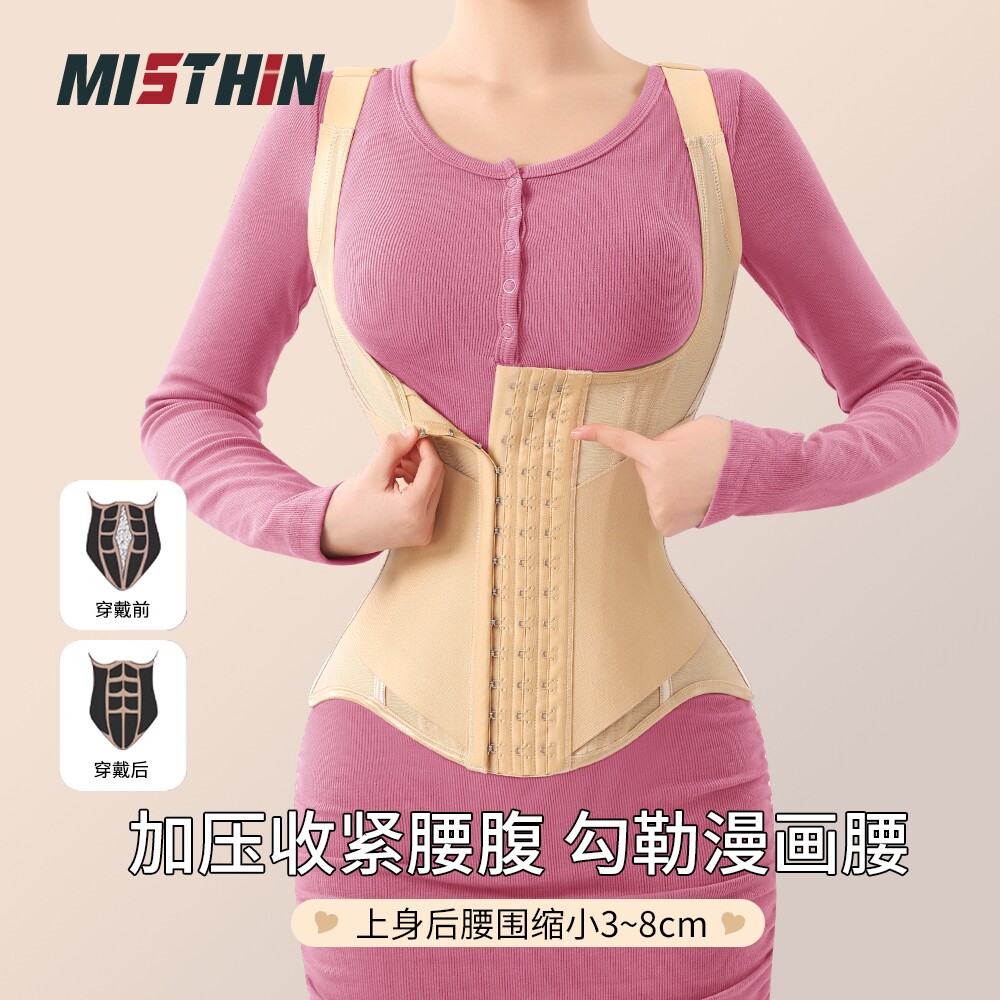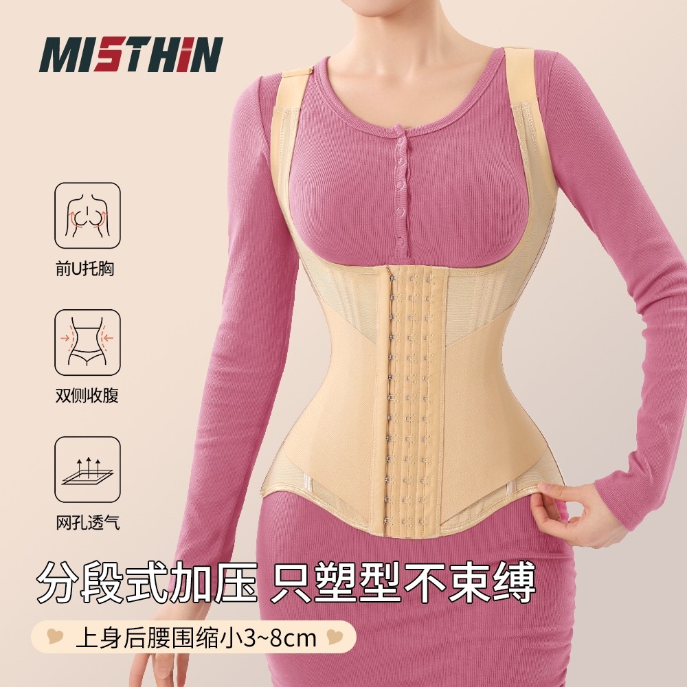 MISTHIN束腰带女肩带升级背心式 强力收腹托胸挺腰收背网纱塑身衣
