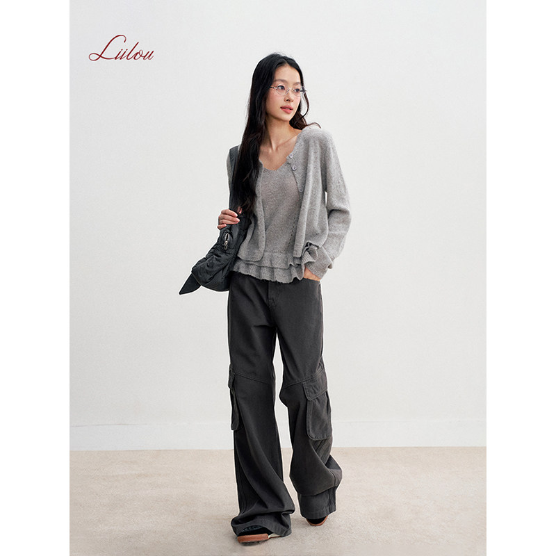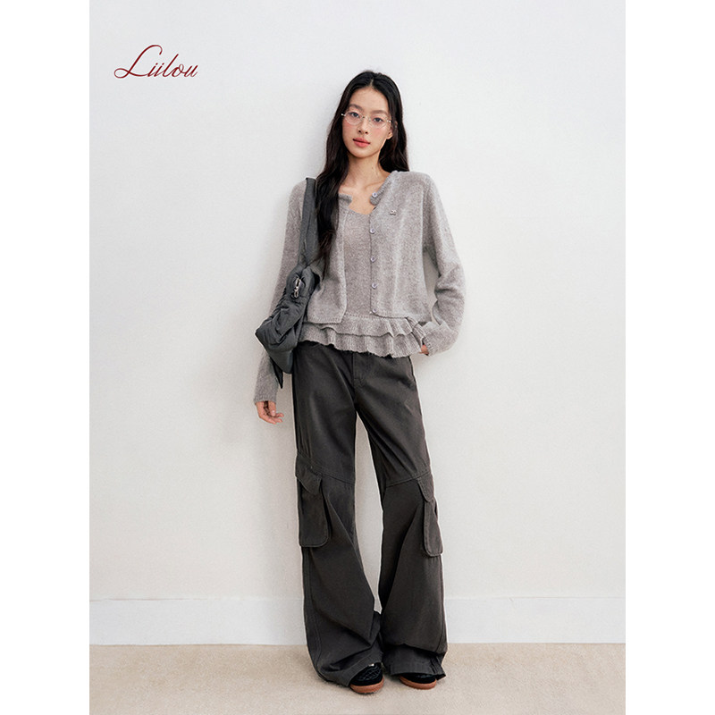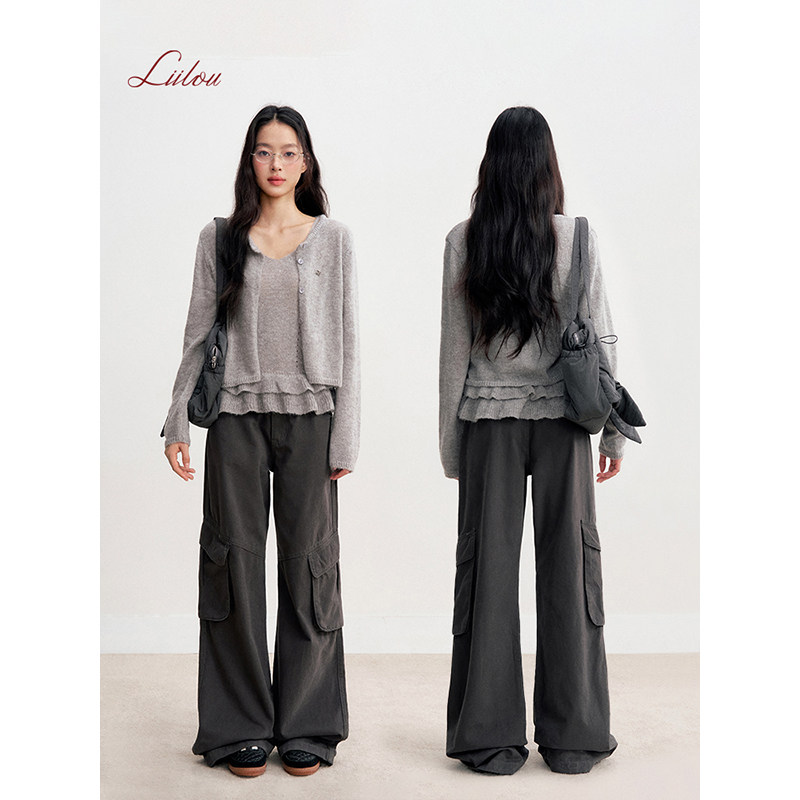 软糯呼吸 圆领短款 长袖 卢昱晓同款 毛织背心套装 25aw 开衫 Liilou