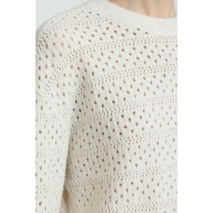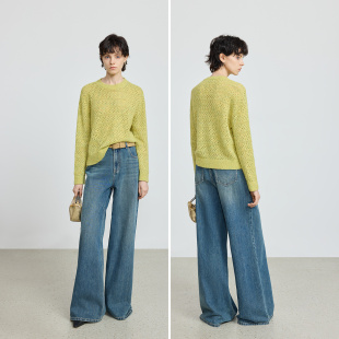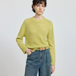 女 针织衫 LILY2025冬新款 含羊毛镂空亮片夹花宽松休闲圆领套头长袖