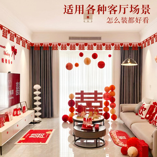婚房布置套装 饰结婚拉花 男方女方新房卧室客厅喜字挂饰吊顶婚礼装