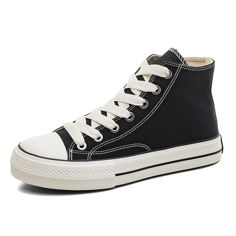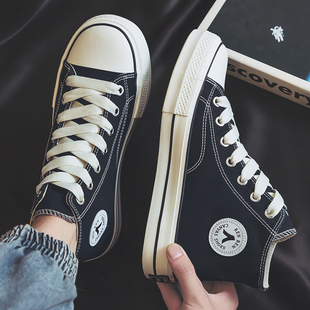 百搭增高 冬季 新款 黑色鞋 潮流帆布鞋 休闲板鞋 情侣面包鞋 女 子男鞋