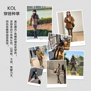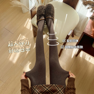 淡时光咖啡色连裤 袜 袜女秋冬加绒加厚保暖显瘦美拉德风踩脚打底裤