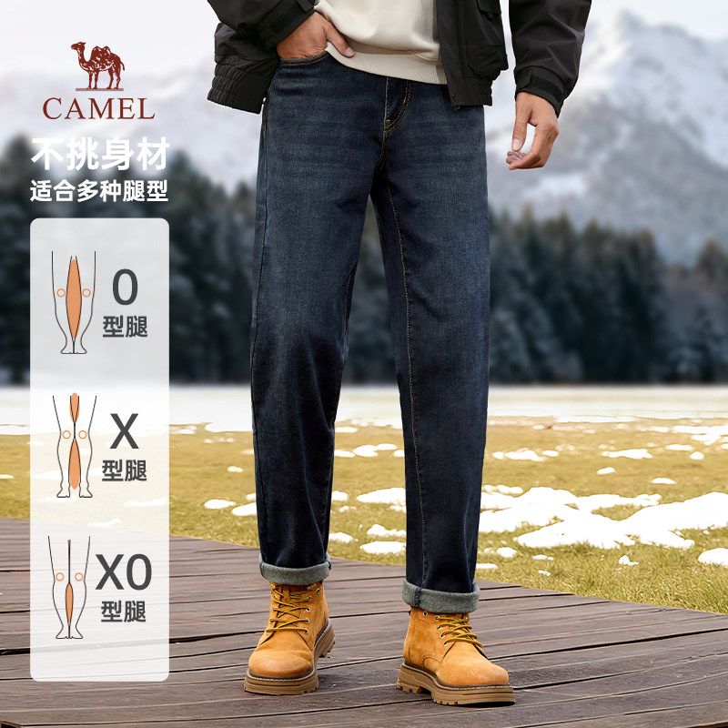 加绒保暖户外通勤休闲长裤 男2025秋冬款 子 直筒牛仔裤 骆驼男装