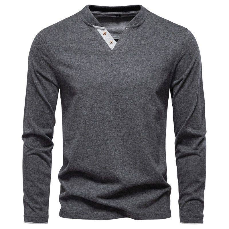 时尚 男士 彩棉纯色长袖 T恤V领休闲男款 2025秋季 上衣T恤衫 跨境新款
