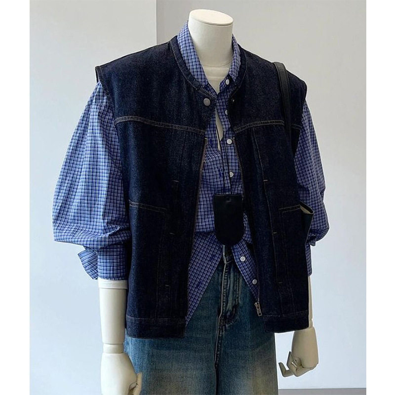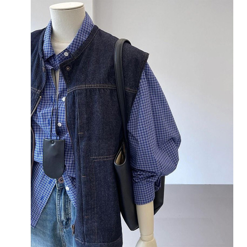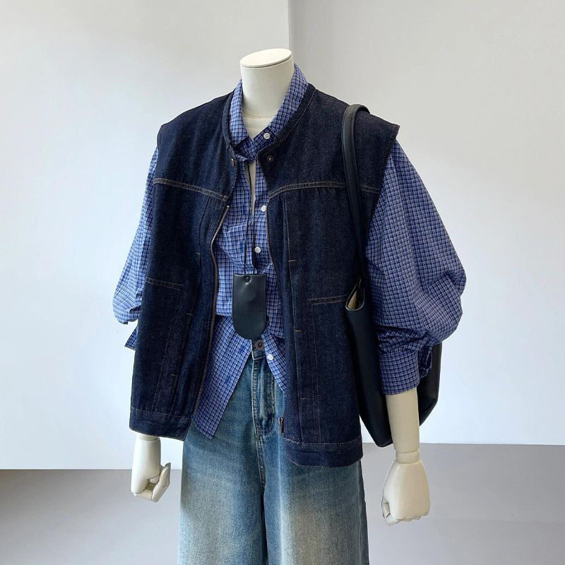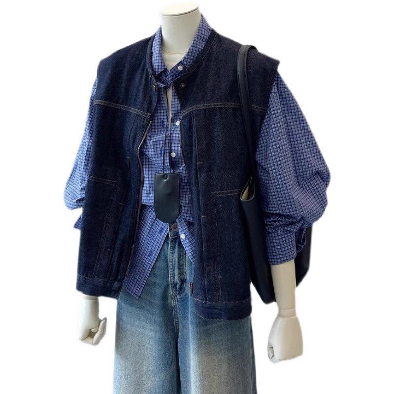 牛仔裤 秋季 设计感马甲气质衬衫 韩版 三件 慵懒风穿搭女2024新款