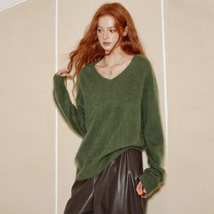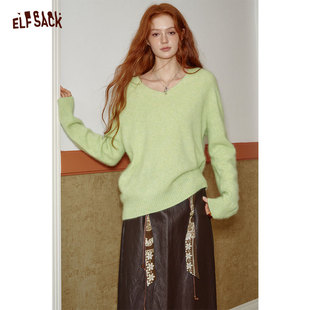 口袋黄色v领新年毛衣女25秋冬新款 妖精 慵懒风软糯 94%绵羊毛