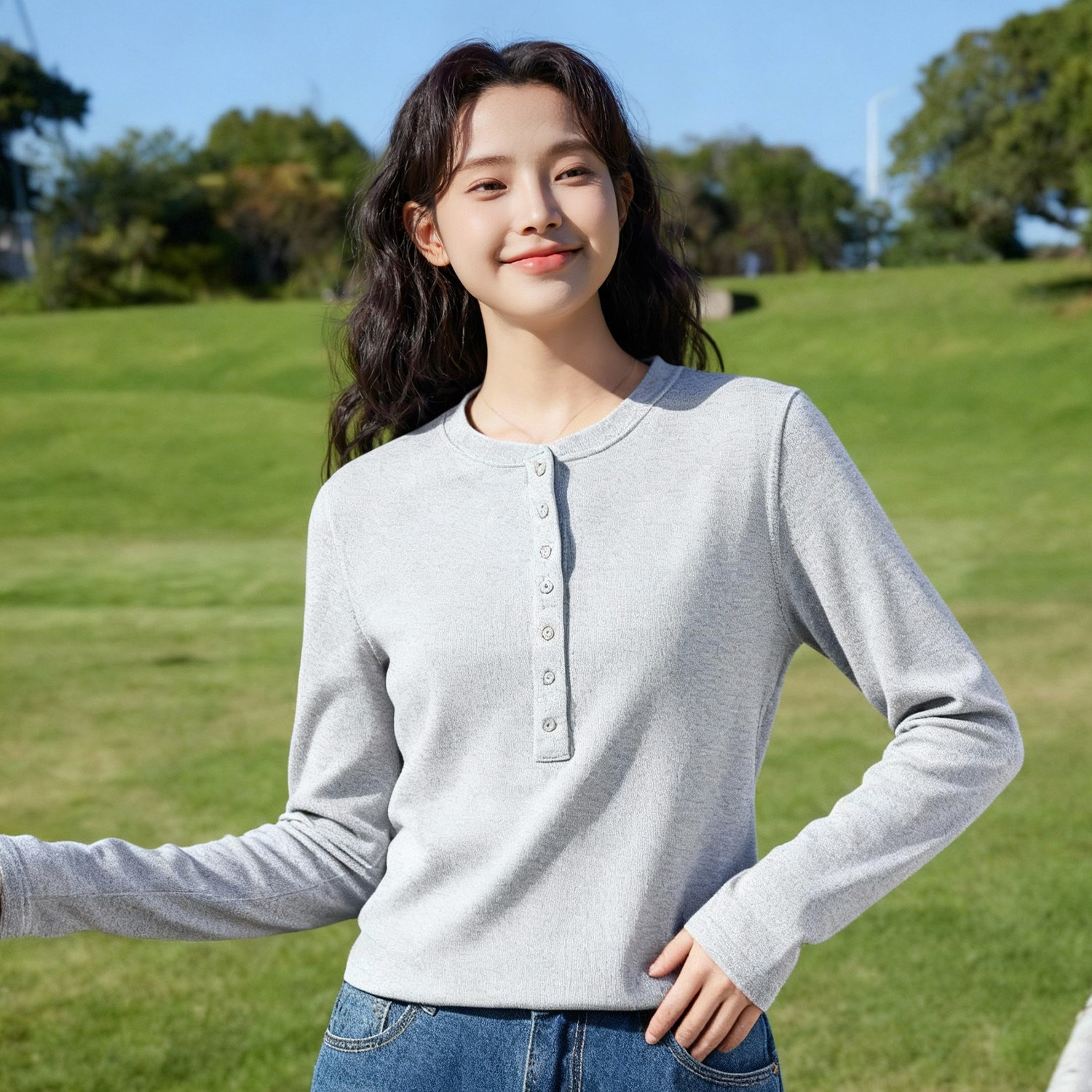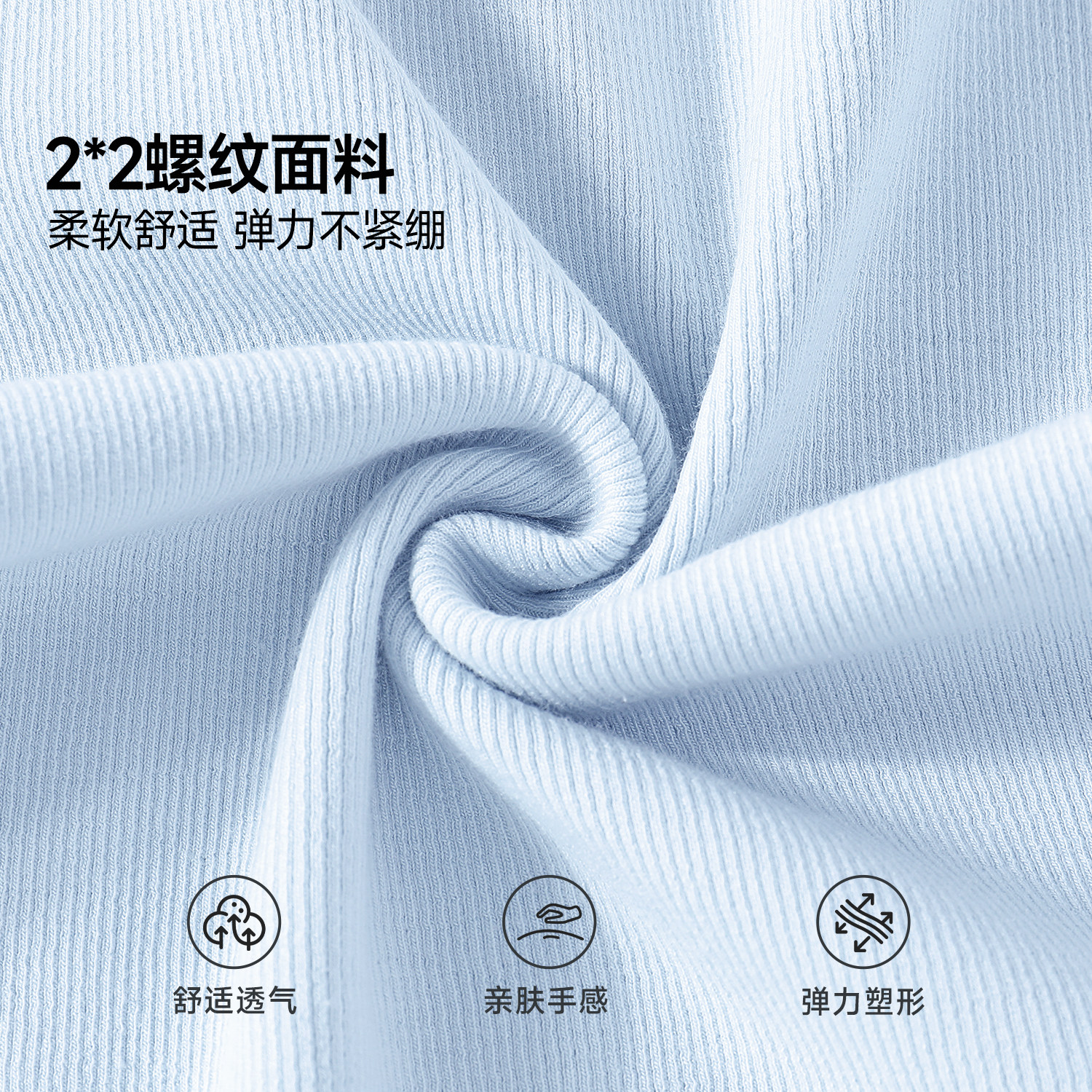 收腰显瘦长袖 班尼路黑色开领罗纹修身 新款 女春季 T恤上衣女Q 打底衫