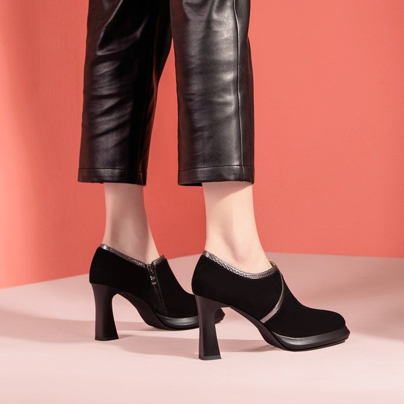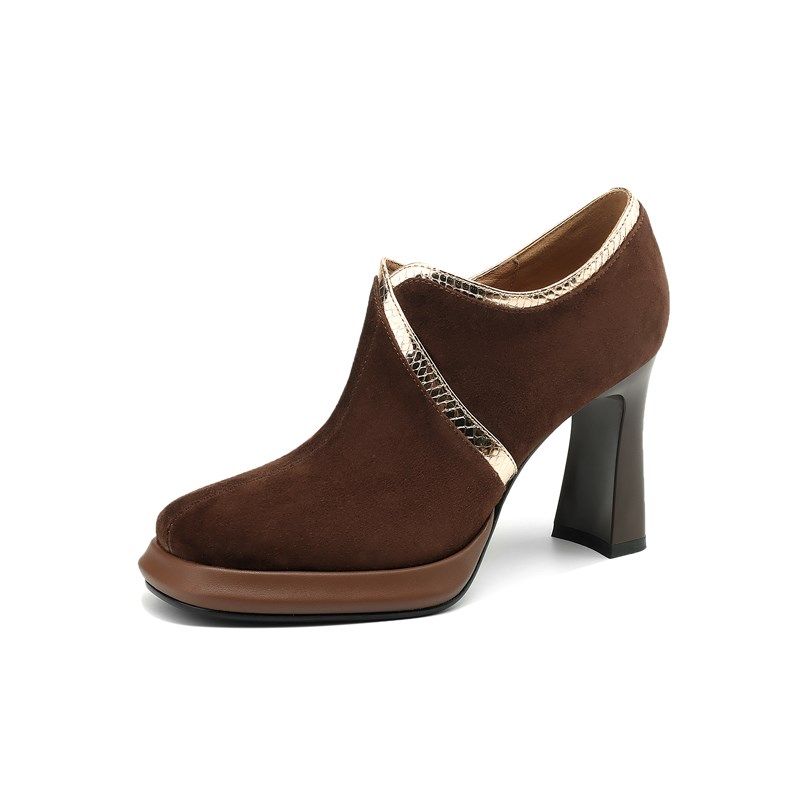 厚底高跟鞋 英伦风复古粗跟皮鞋 拼接磨砂方头单鞋 新款 女 2025春季