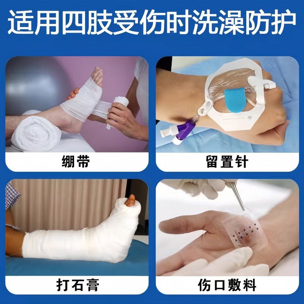 骨折洗澡防水脚套大小腿手臂肘石膏童婴儿受伤术后伤口泡药保护套