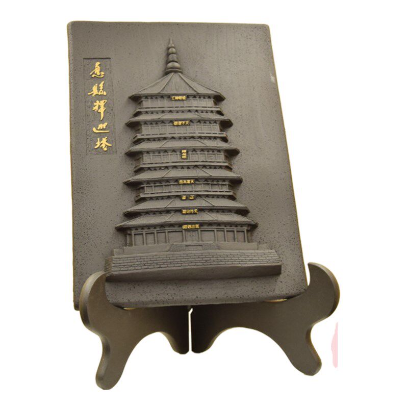 迎新甄选手工创意客厅卧室摆件办公室摆件应县木塔煤雕工艺品摆件