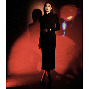 黑色法式 御姐气质性感收腰显瘦包臀裙 方领复古连衣裙女2024秋新款