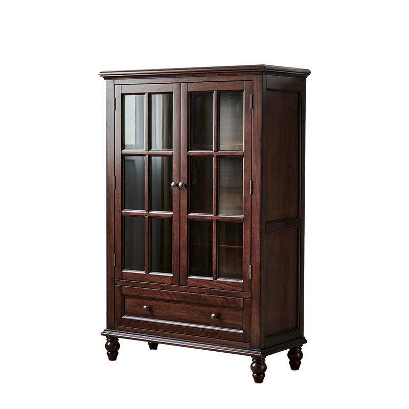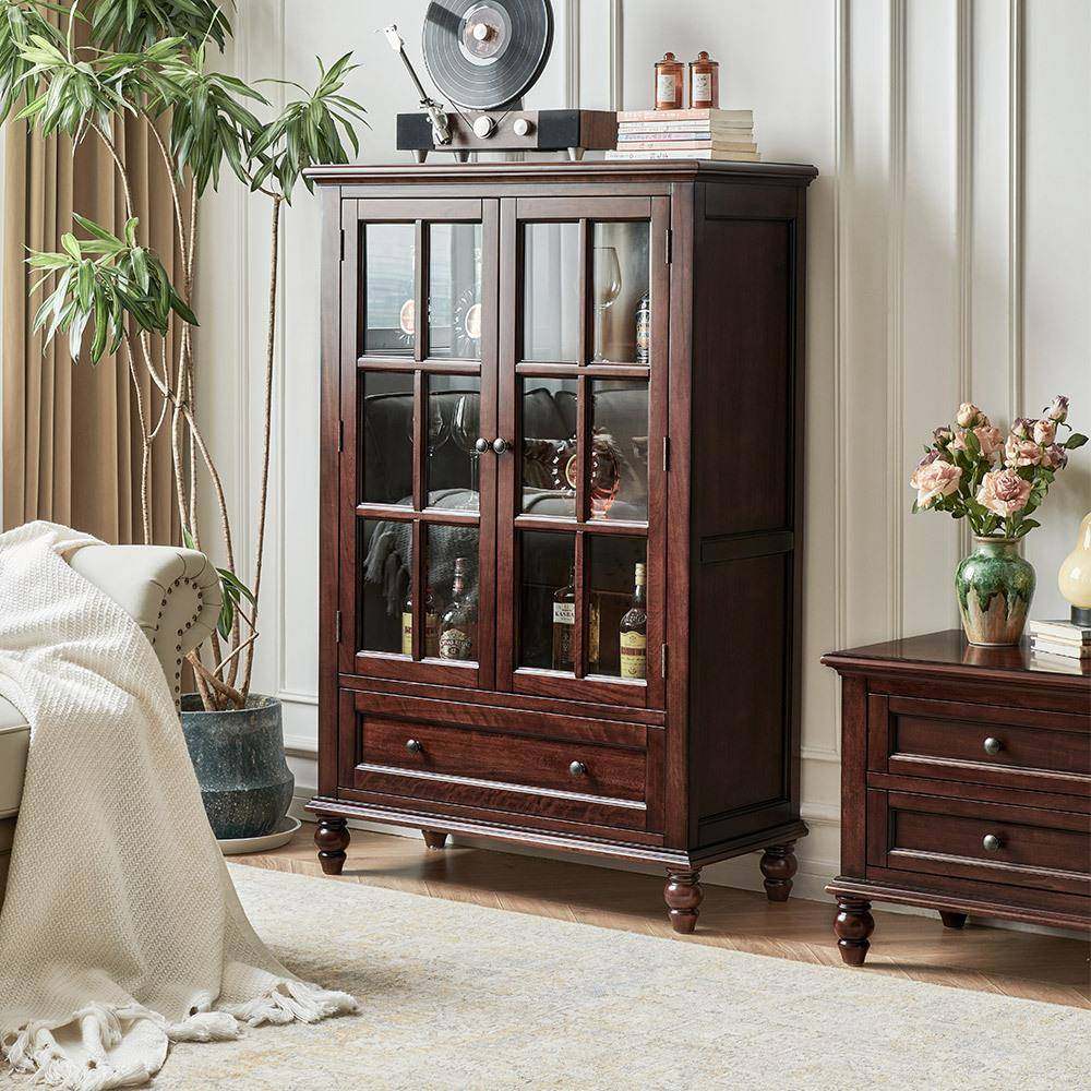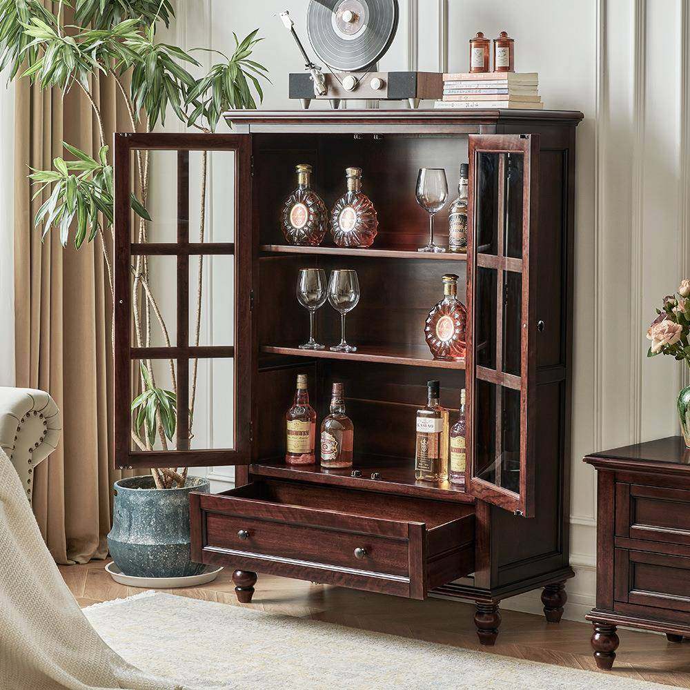 帝罗堡式 美实木酒柜靠墙客厅樱IZC展桃木小酒柜带玻璃门复古示柜