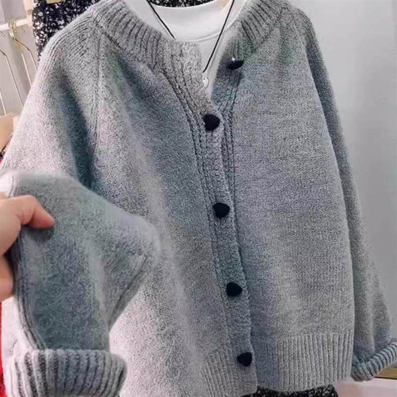 休闲洋气爱心纽扣针织开衫 2025秋季 显瘦韩版 绿色加厚毛衣女装 新款
