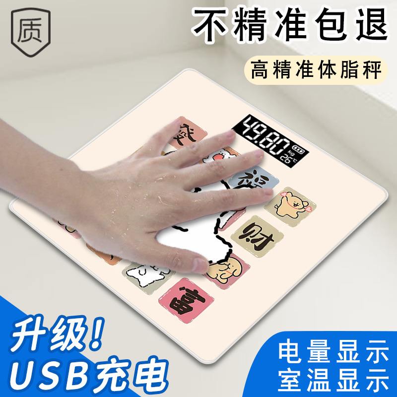 跨境卡通智能体脂秤小型体重家用充电秤高重批发测精准电子秤