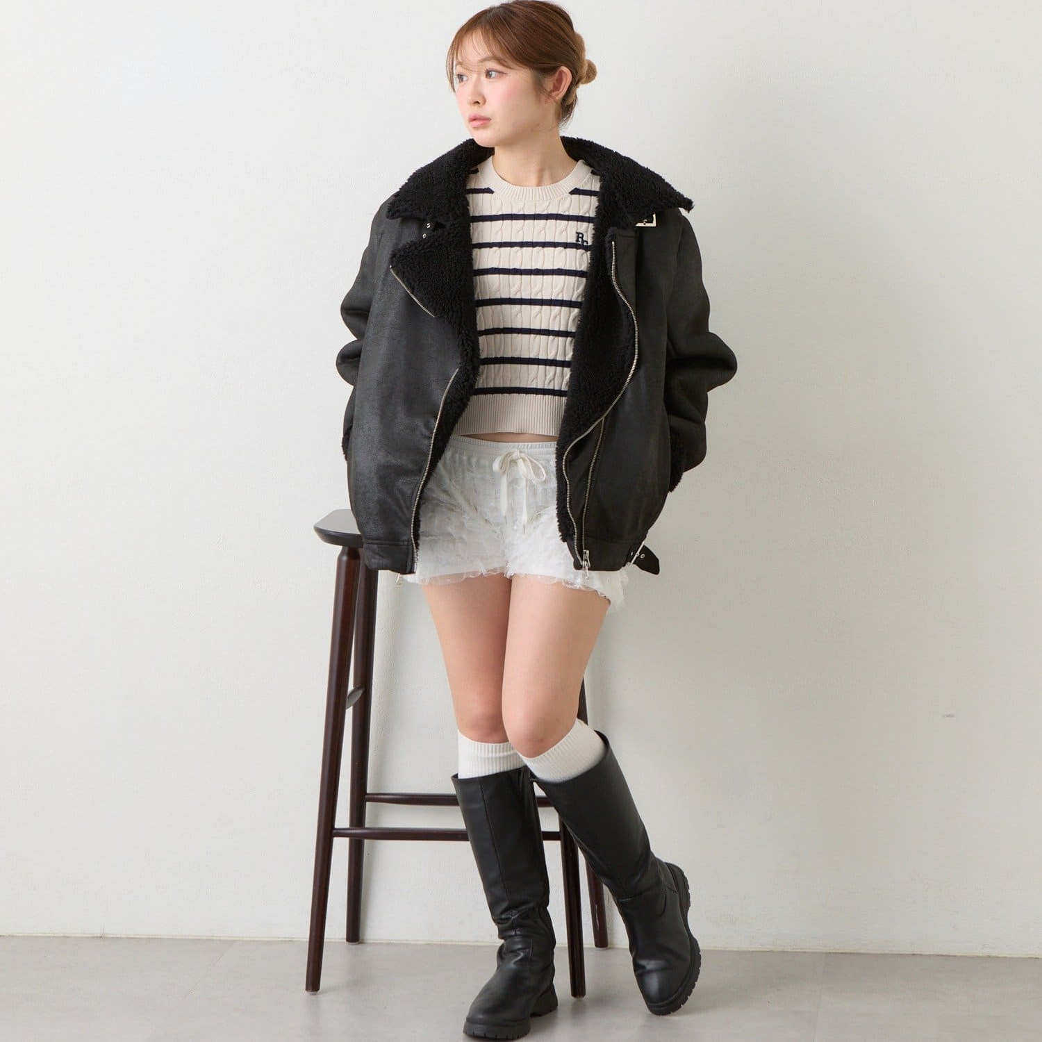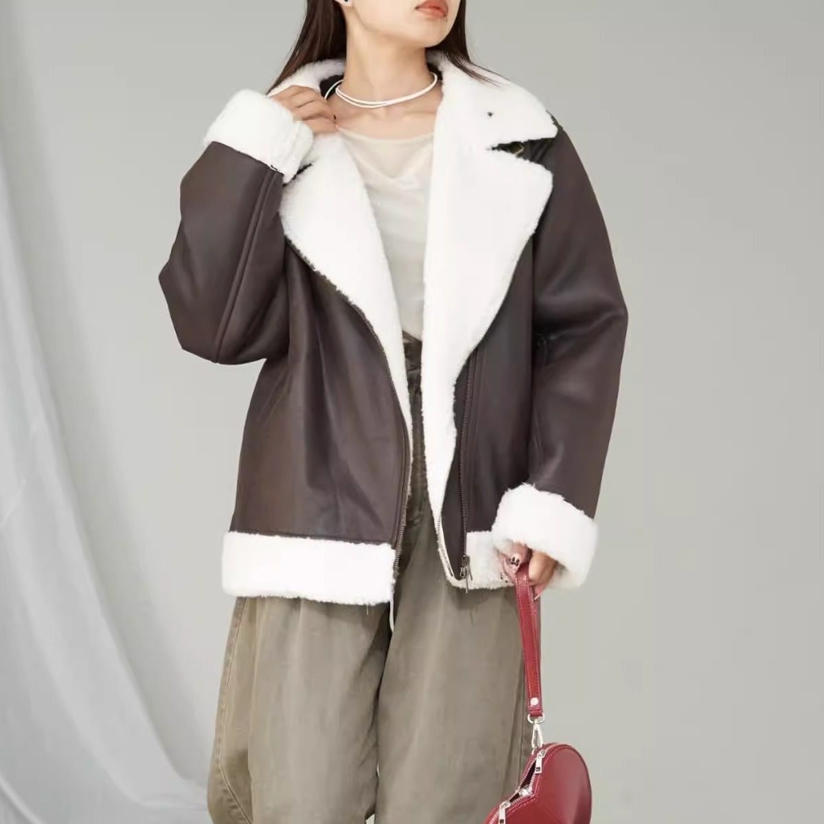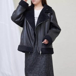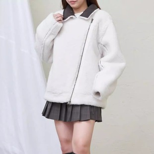 日单品牌秋冬新款 斜拉链两面穿加绒加厚机车外套女31860 翻领长袖