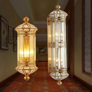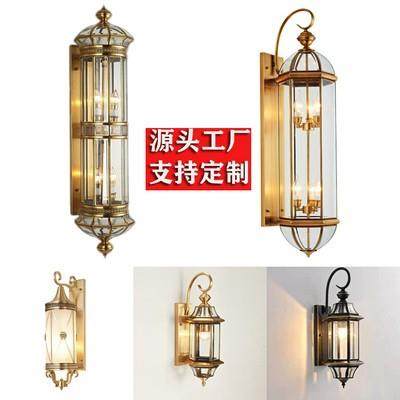 过防水户外壁灯欧式 全铜灯走廊庭院LBM灯室外阳铜台全玻璃壁道灯