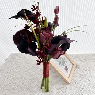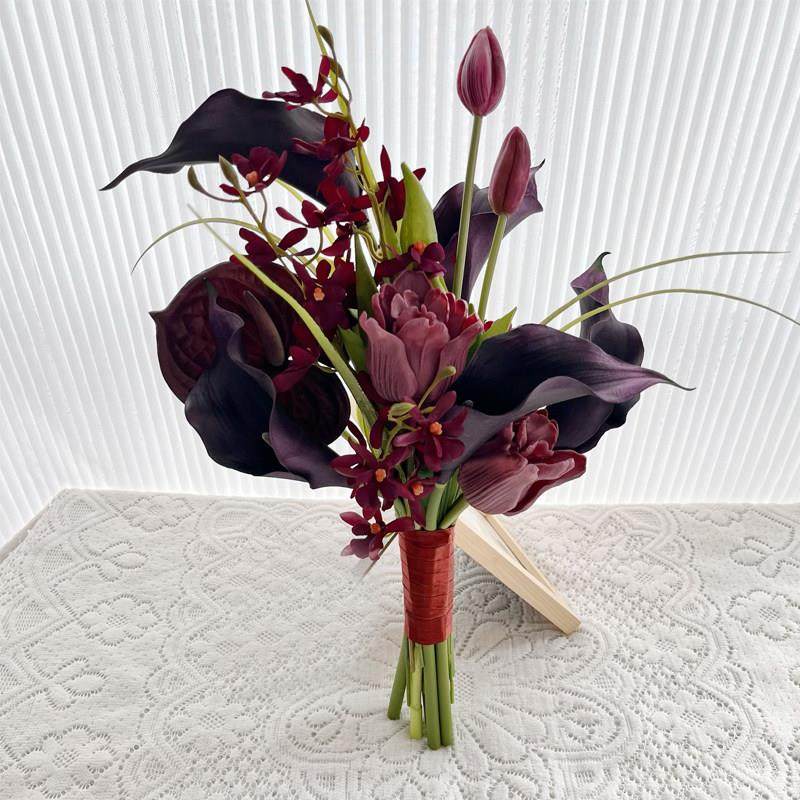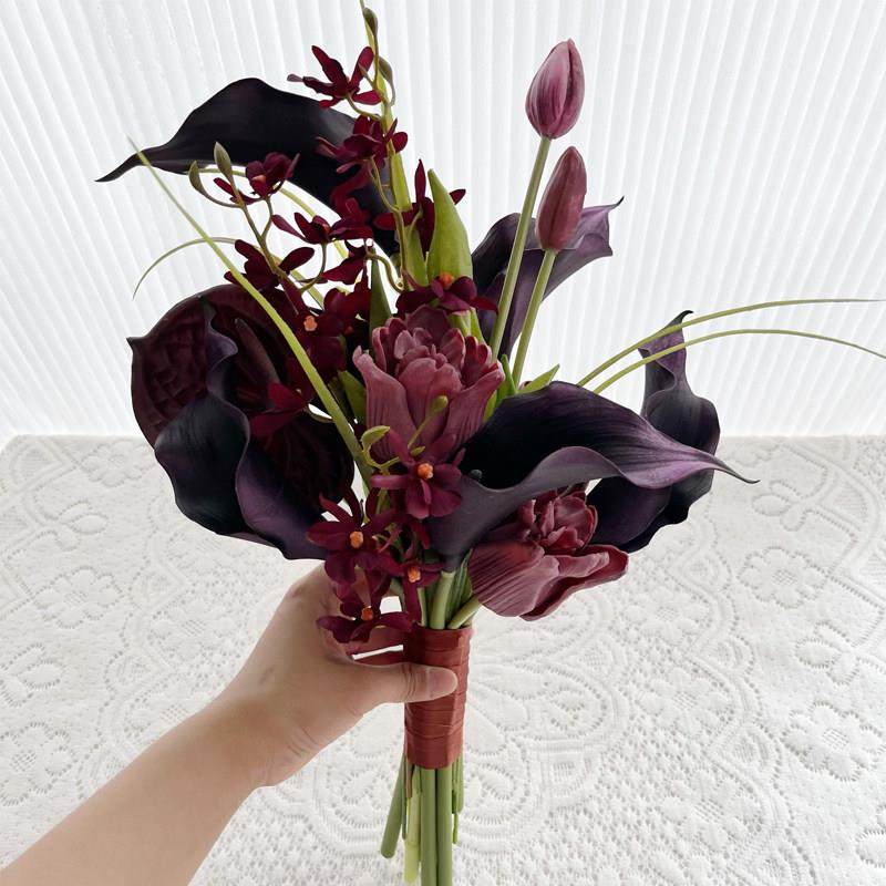 婚庆仿真花假花大红酒红订婚中式 饰插花材路引排花吊顶花艺 婚礼装