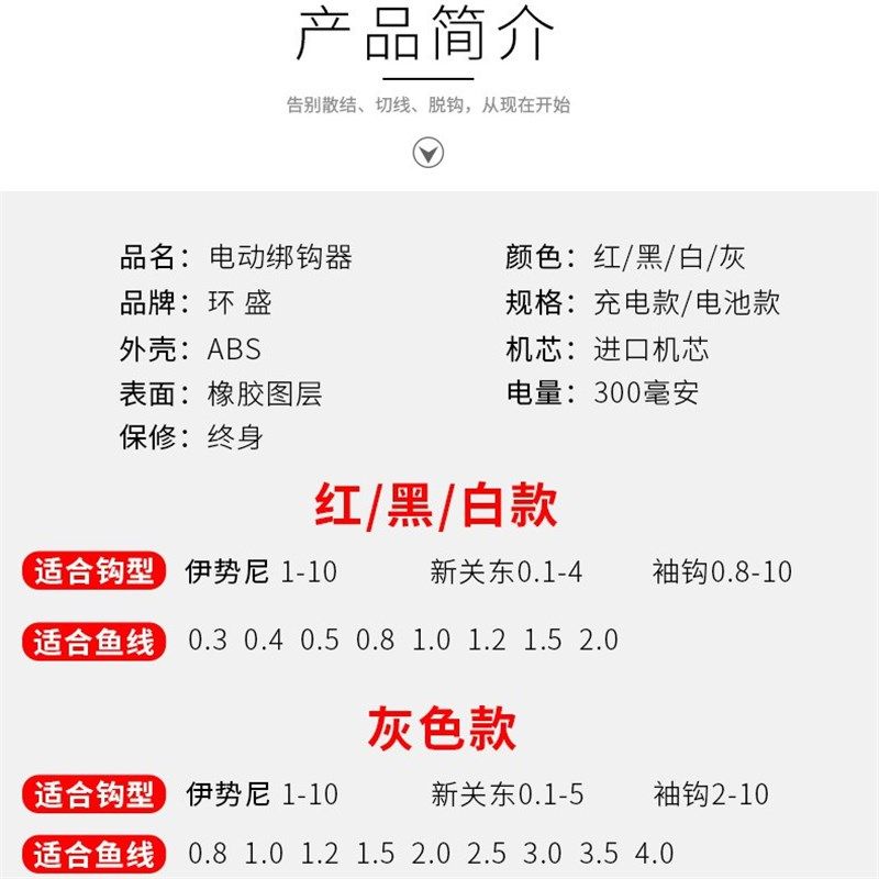 钓鱼电动绑钩器充电不伤线鱼线双钩鱼钩全自动子线打结器渔具用品