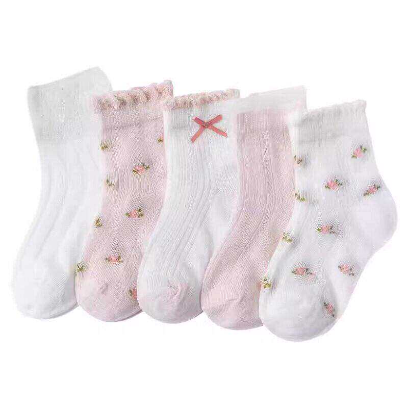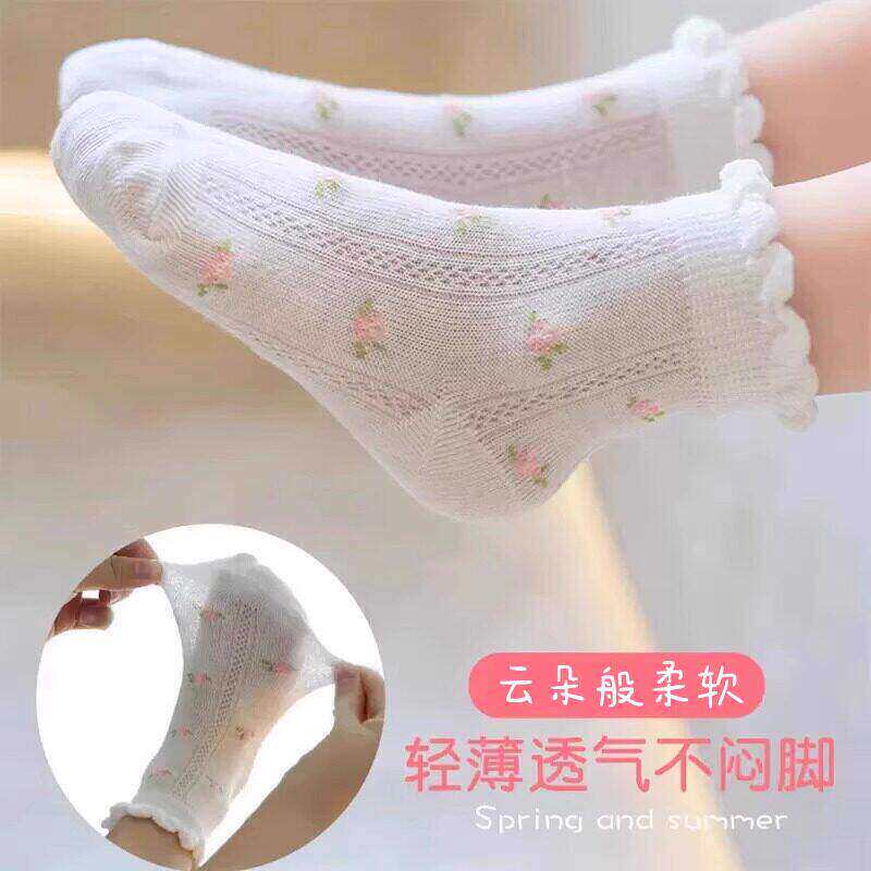 白色袜子女夏款 春秋花边百搭粉色洛丽塔jk长袜HH 中筒潮春百搭款