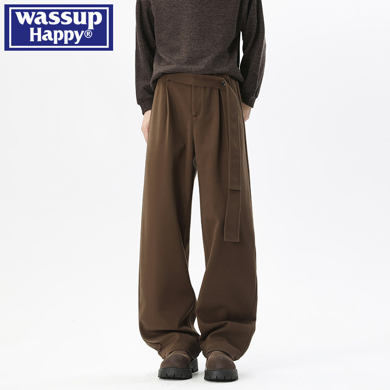 happy复古咖色垂感休闲西装 宽松阔腿长裤 裤 美式 子 男春秋季 wassup