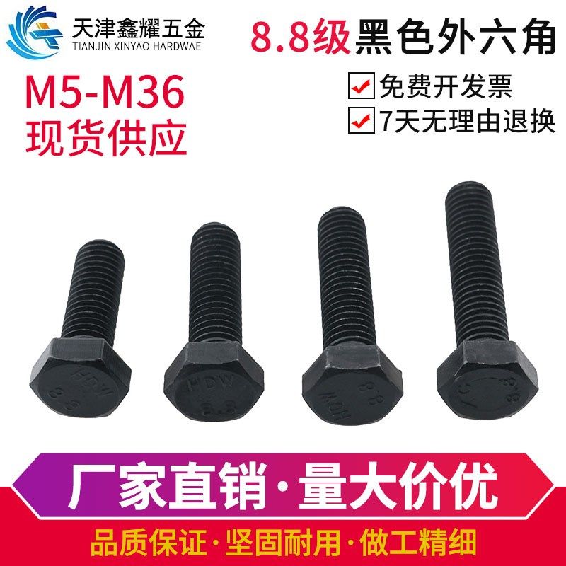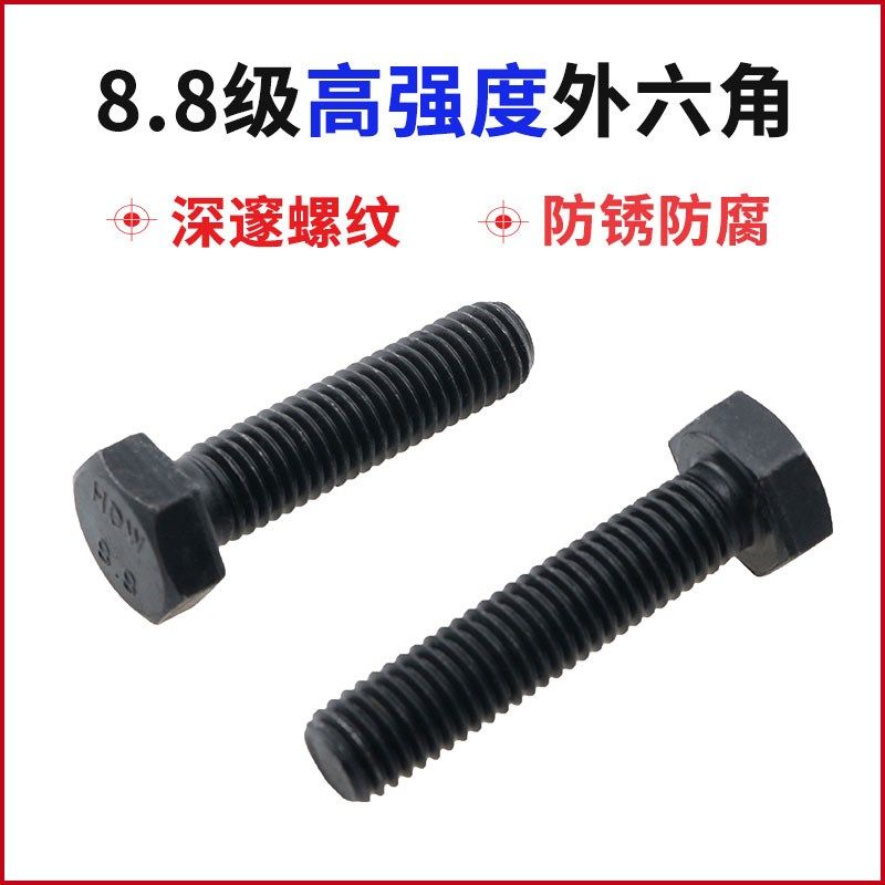 速发8.头级高强度全牙外六角螺栓发黑8角帽六螺丝全螺纹螺丝M0