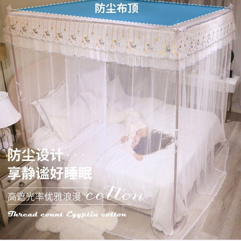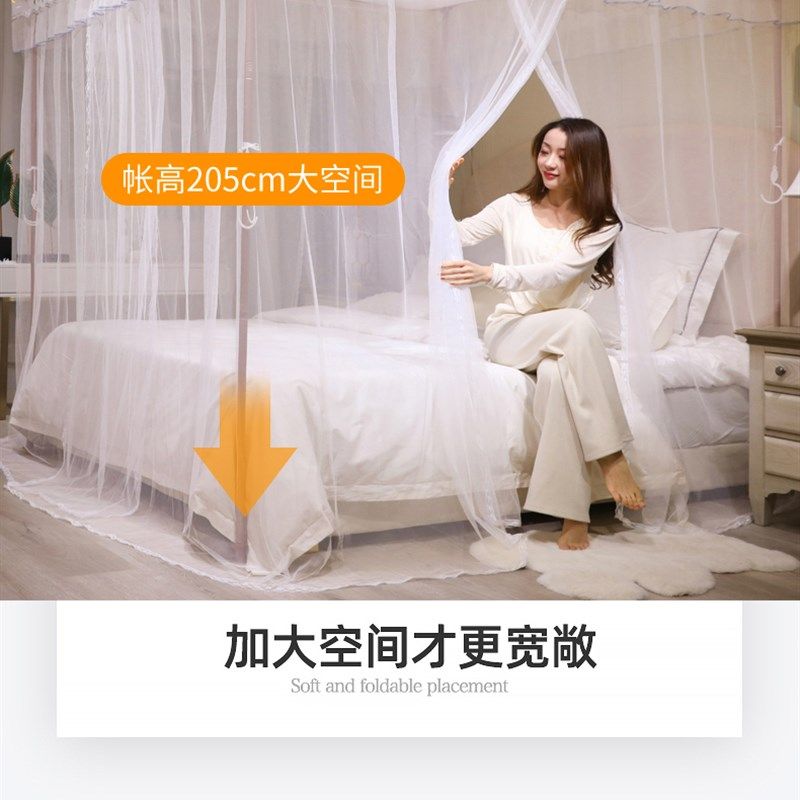 新款 蚊帐1.8米1.0m支架1.2m1.5米家用纹帐三开门卧室落地加粗防蚊