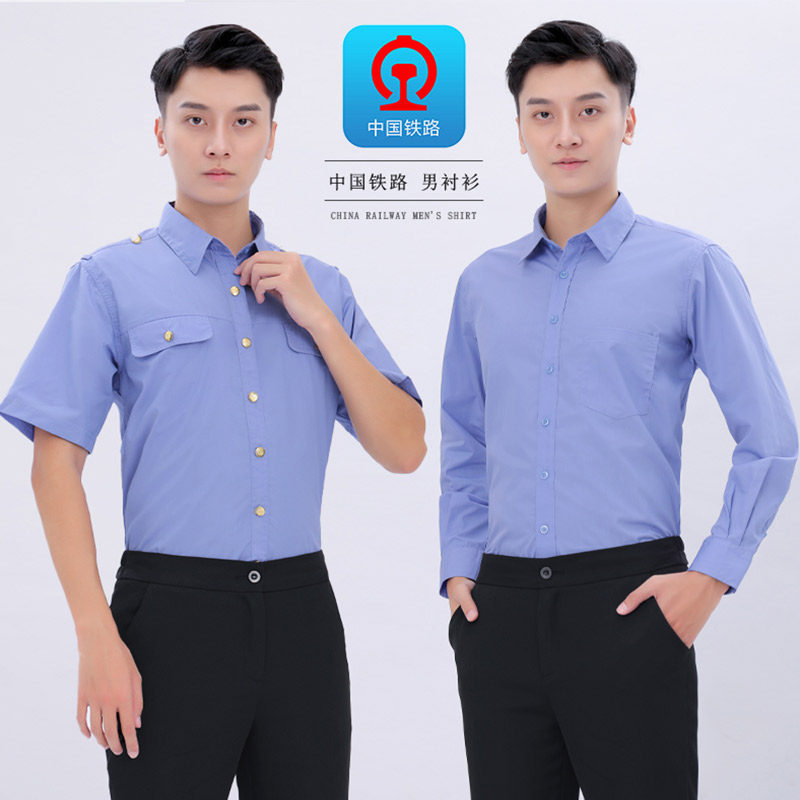 铁路男士 蓝色衬衣铁路工作服工装 衬衫 男长袖 制服 路服2019款 新款