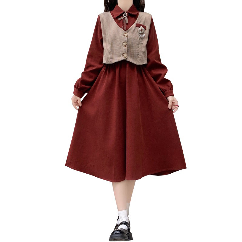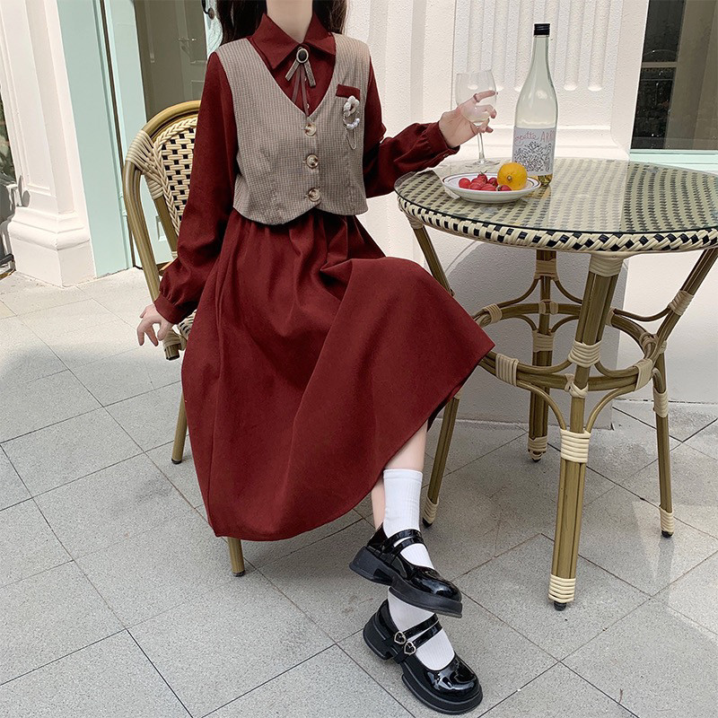 中长款 连衣裙女装 针织马甲裙背心背带裙小个子X2 新款 唐狮2025秋装