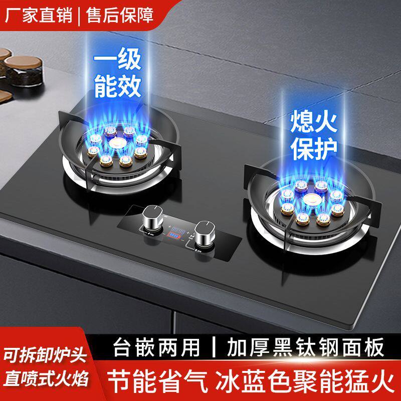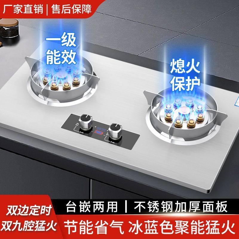 惠普好太太煤气灶双灶台嵌两用不锈钢双边定时大面板天然气燃气灶