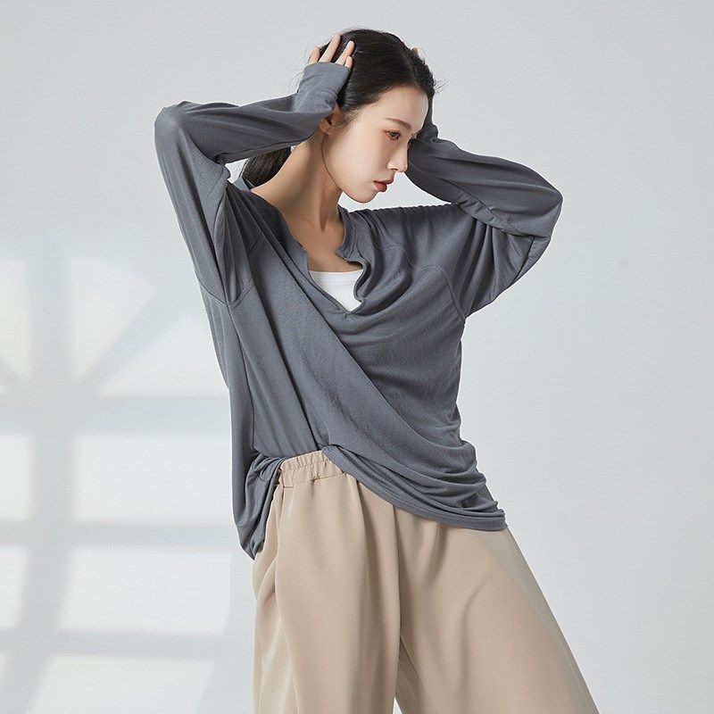 速发舞个典舞蹈生日常穿搭高档宽松古v男深性长袖 T百搭上衣