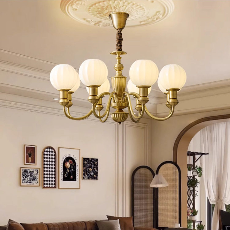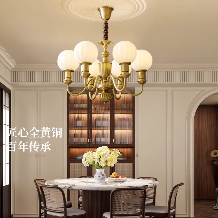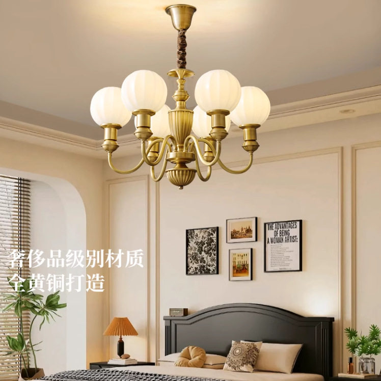客厅全铜吊灯法式 灯具 中古餐厅灯奶油风创意魔豆主卧房间全铜美式